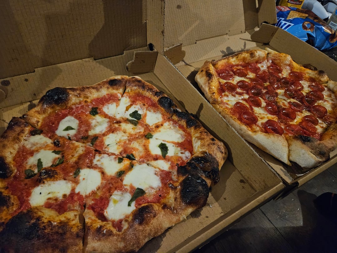 Finally tried the pizza truck that's been coming to my local brewery. They were very good! That's their Margherita on the left and a pepperoni with sambal chili swirl and hot honey on the right. by BluellaDeVille pizzaTakeawayWrite A CommentYou must be logged in to post a comment.