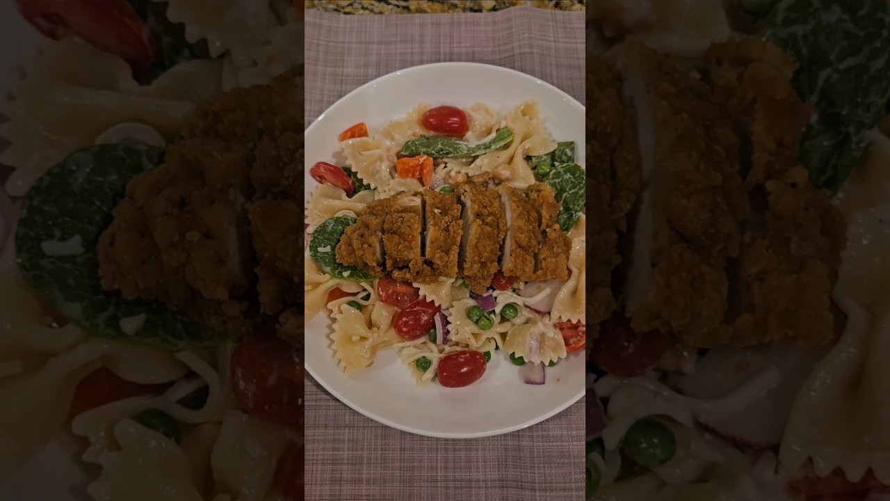 Home cooking recipe of Italian pasta salad, bow tie pasta, tomatoes, red onions, red pepper, reddish, peas, and chickpeas, green leaves, finish with fried chicken, delicious dinner. #dinner #friedchicken bow tie pasta saladchickencuisineFoodfried chickenhome cooking recipehomemade pasta saladhow to make pasta saladitalianitalian cuisineitalian foodItalyItaly CuisineItaly FoodPastapasta dinnerpasta saladpasta salad recipepasta salad with chickenvideoVlog 1 Comment @wecsupergenius 6 days ago Wow! I believe that will be lunch tomorrow! Thank you for the inspiration!Write A CommentYou must be logged in to post a comment.