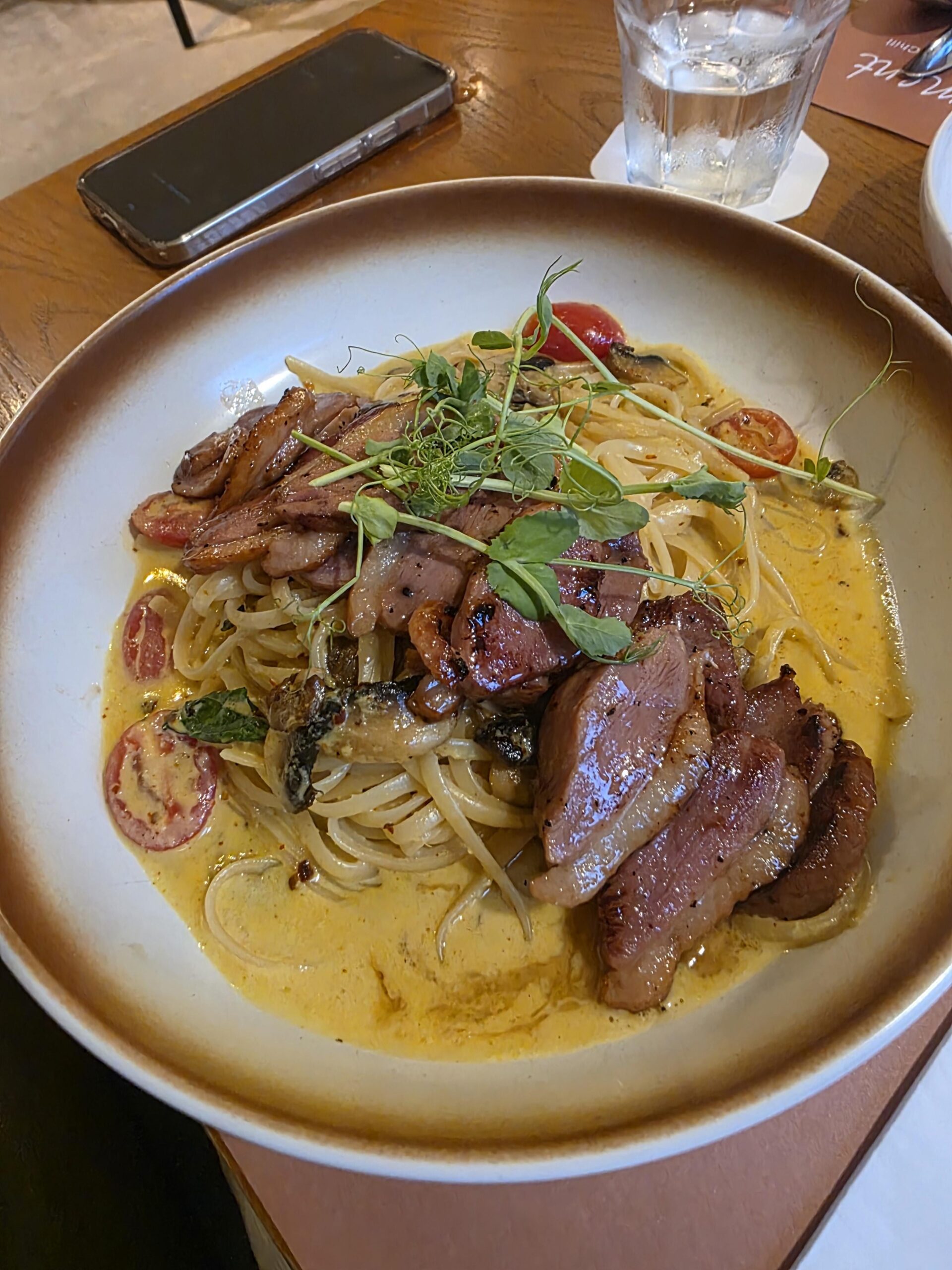 SMOKED DUCK CHILLI PADI PASTASignature dish of homemade lemak chilli padi sauce with juicy smoked duck breast marinated in unagi sauceI had this in a Halal restaurant. Singapore – The Malayan Council – Bussorahby MammothBackground665 PastaWrite A CommentYou must be logged in to post a comment.