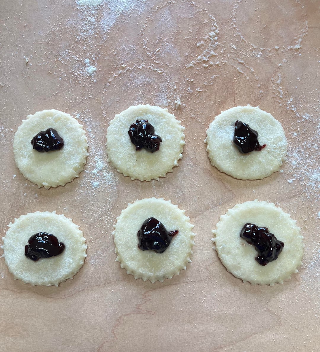 These we’re absolutely delicious. I watched Nonna Irma from Pasta Grannies make these and I had to make them. She used apricot jam, I didn’t have that but I did have blackberry jam so I used that.