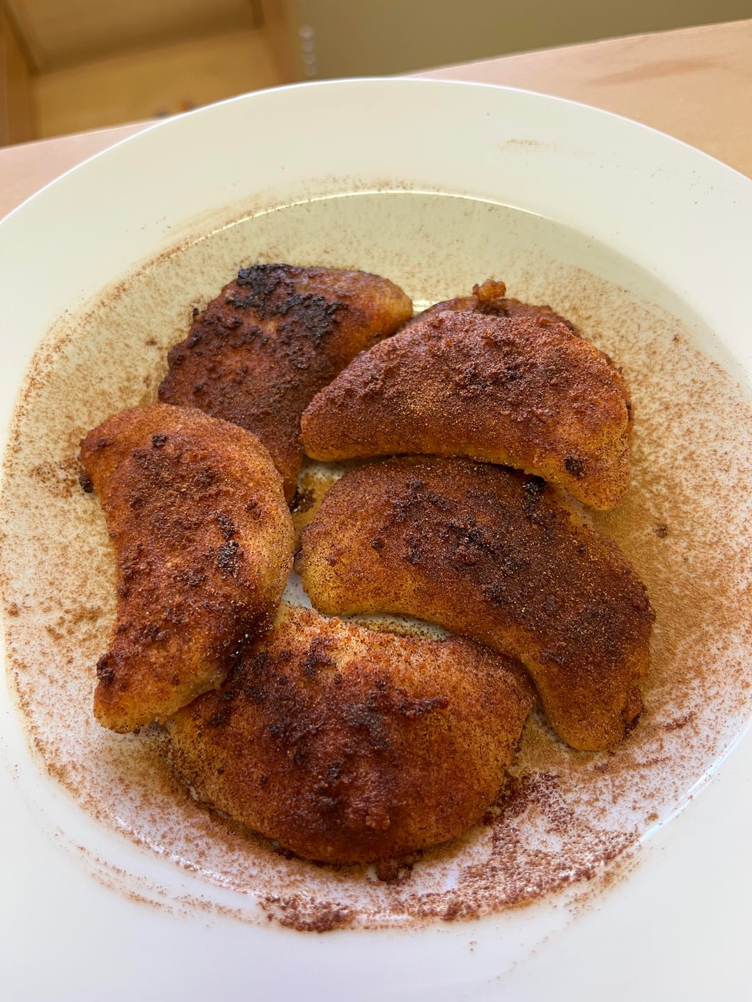Served: fried in butter with breadcrumbs and topped with cinnamon