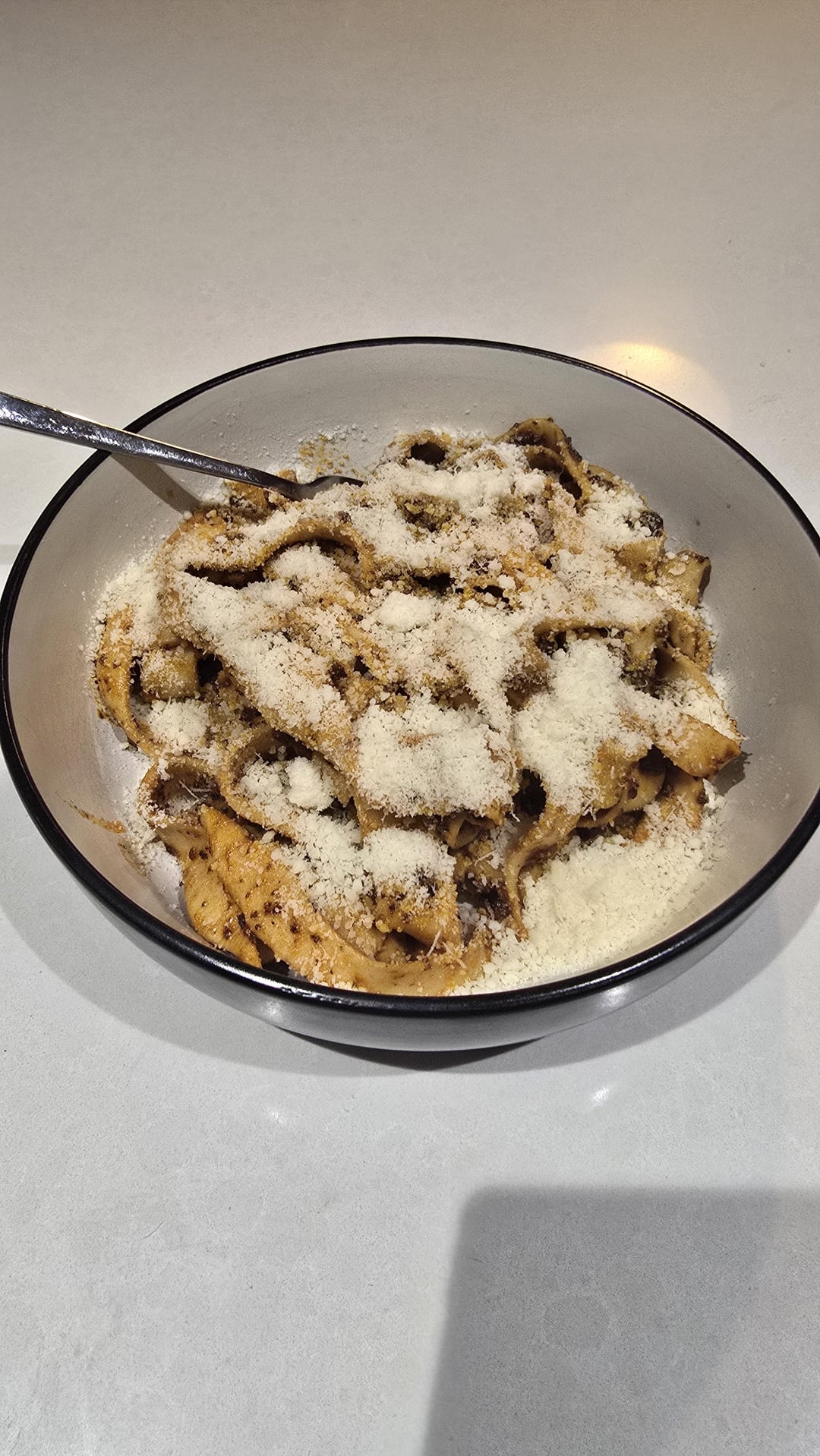 Pasta alla Ragu by Fit Green Mind on Instagram, minus the miso for soy sauce and I added real parmesan as I'm vegetarian not vegan. Simple 1 egg 1 cup flour pasta recipe. So worth it…