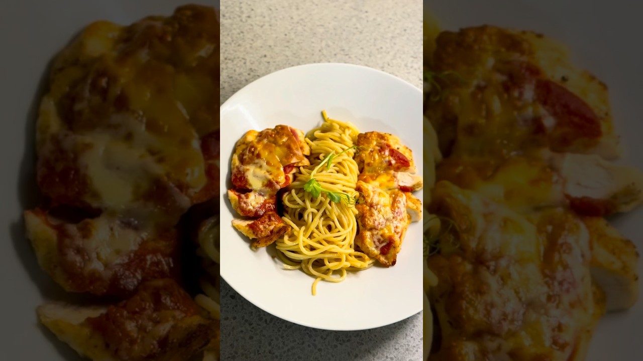 1️⃣1️⃣ Plate pasta, top with baked chicken. Serve hot.