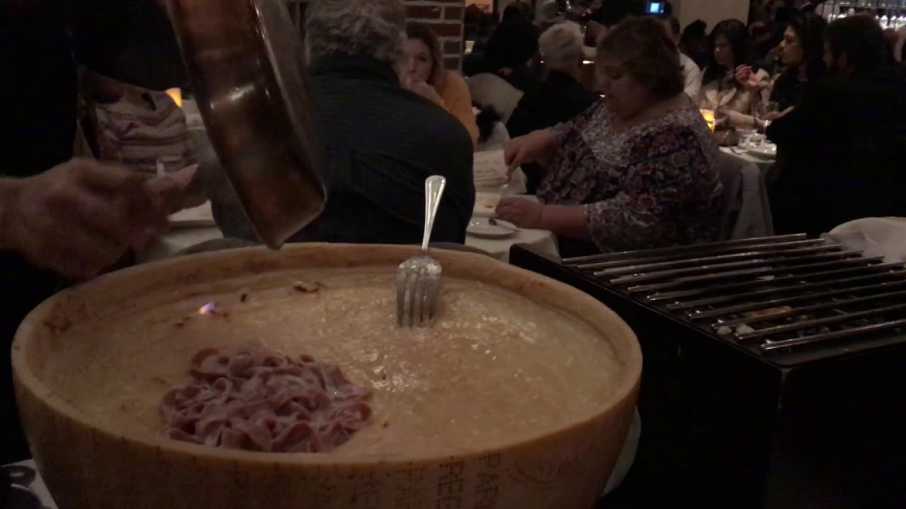 Fettuccine Maiella that are made with Sangiovese wine infused pasta! The table side preparation was even more spectacular with the Parmesan wheel being flambéed so the cheese would melt. Then, at some point, I could not believe seeing the guy scoop even more cheese, before adding to the plates some truffle oil and then shaving a generous amount of truffle. Creamy, I would have thought that the truffle oil would overpower the dish but is was not the case. This is one of the kind dish that I highly recommend.