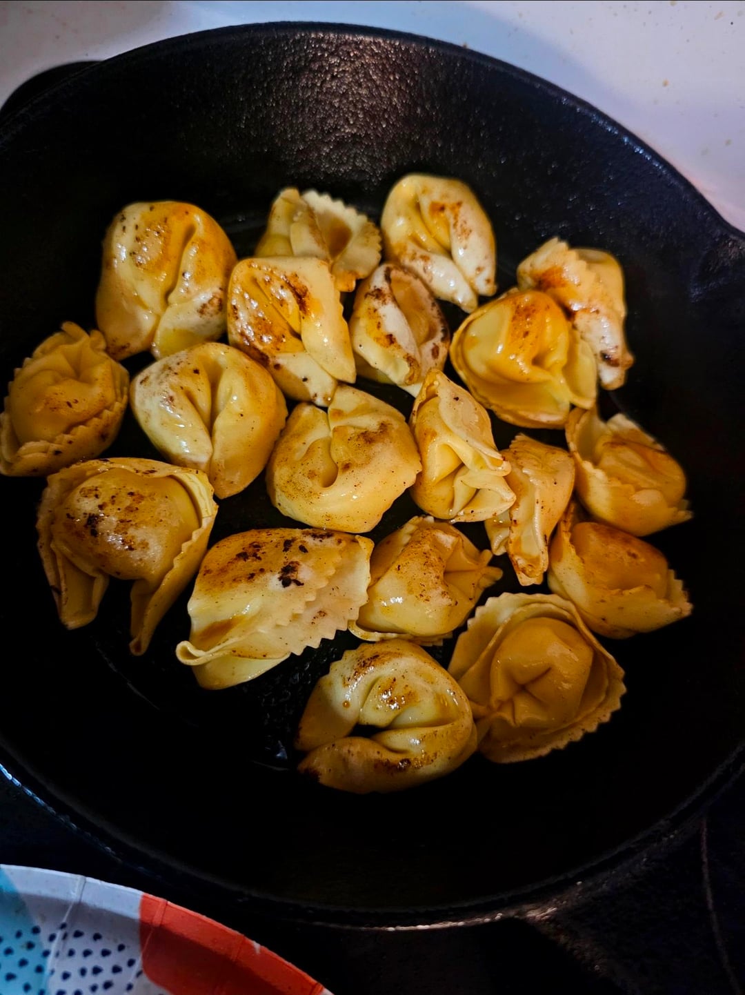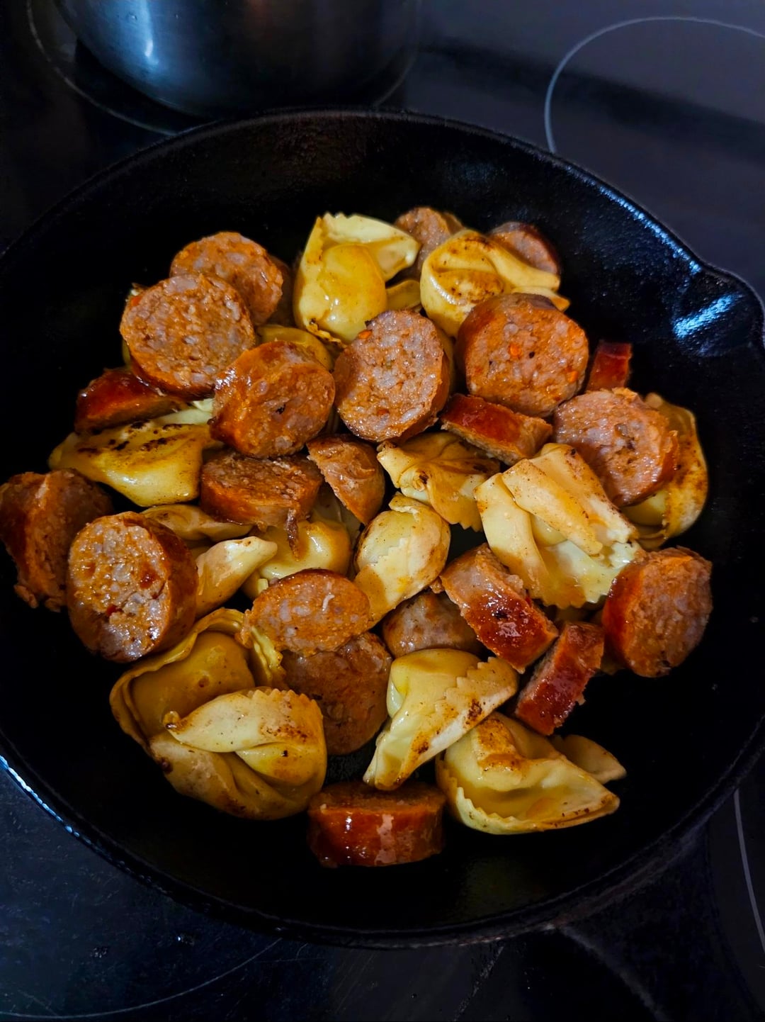Brown some hot italian sausage, brown some prosciutto & cheese tortellini in the sausage fat, slice & add the sausage back, add sauce, stir, cover w/ mozzarella then toss in the oven until the cheese melts. Quick & easy dinner 😂