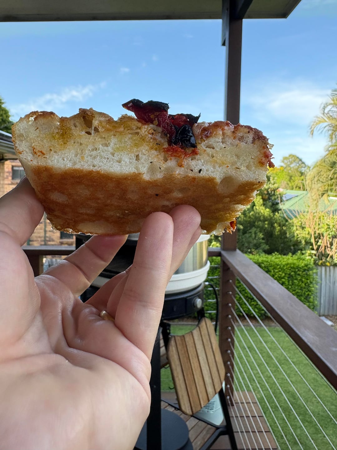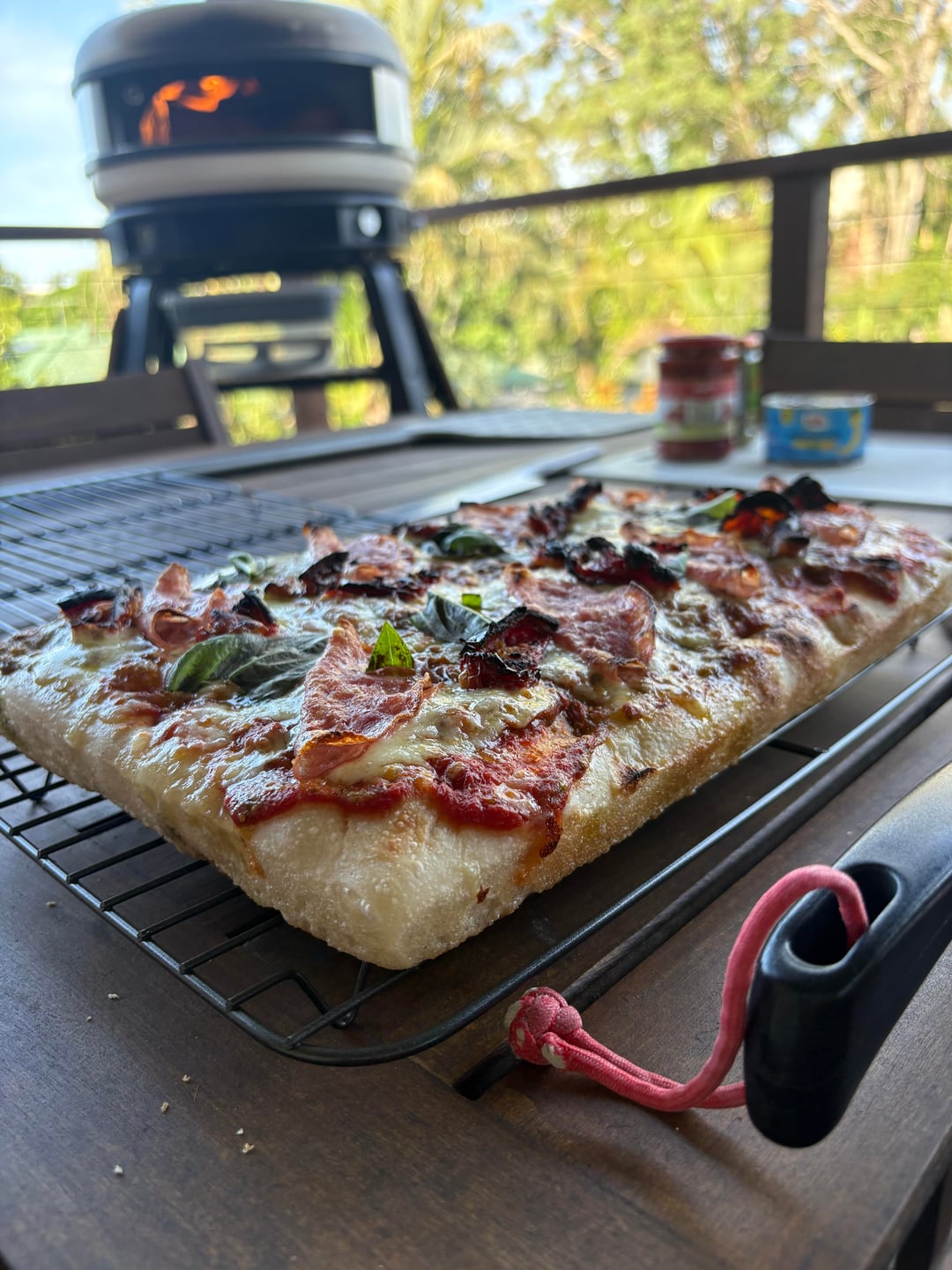 1kg flour685g water 25g salt4g yeast15g olive oilAll ingredients mixed / kneaded 5 hours before cooking.Made 3x275g balls and the rest went into a pan for a “pizza focaccia” (photos 3-5).Happy family tonight!by DiverNumerous6473 outdoor ovenpizzaWrite A CommentYou must be logged in to post a comment.