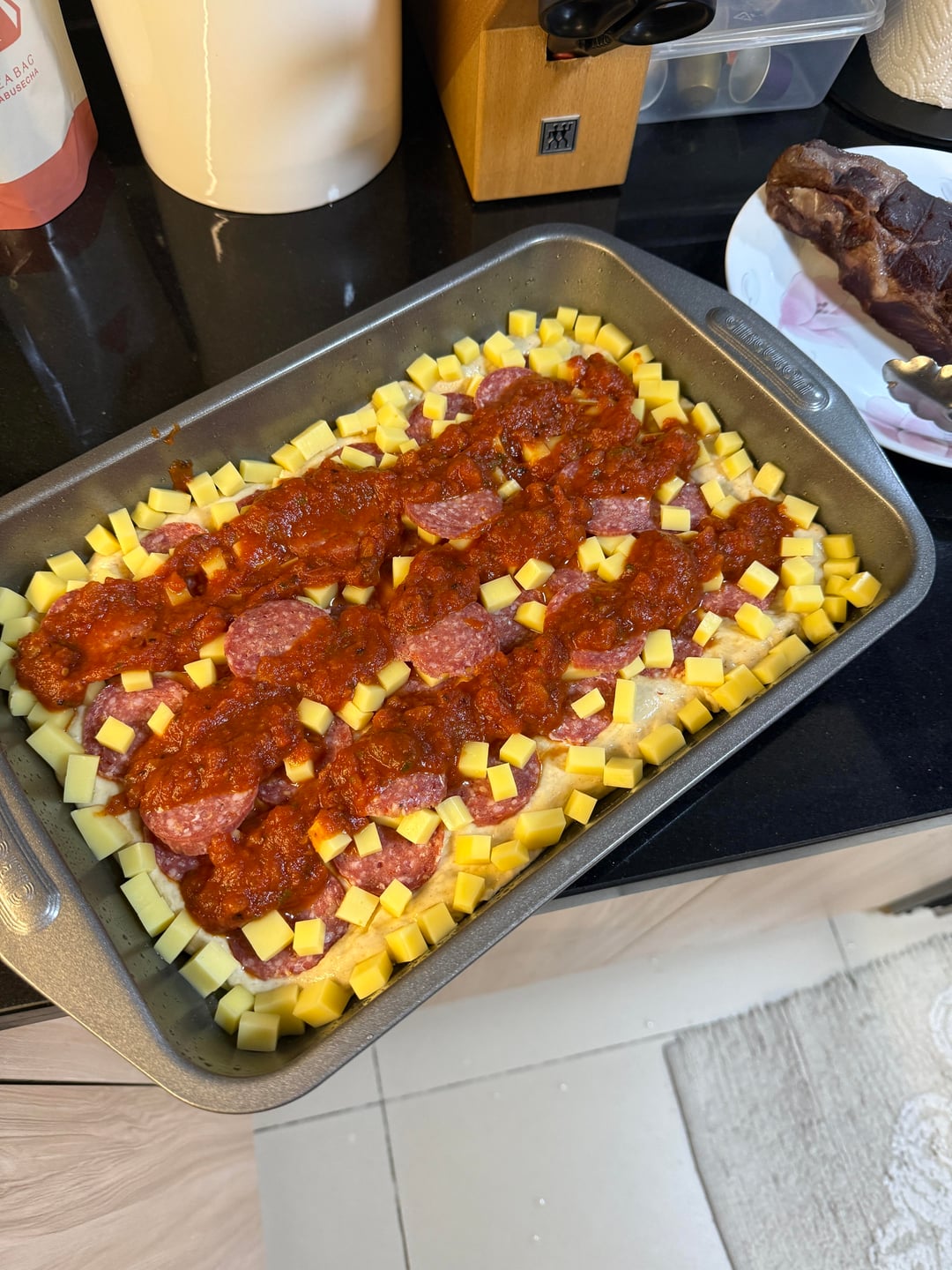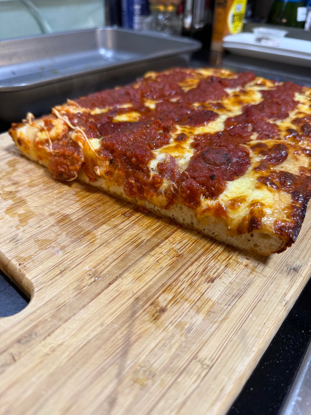 this was my first time making pizza using instant yeast, so i went with a low risk option: pan pizza