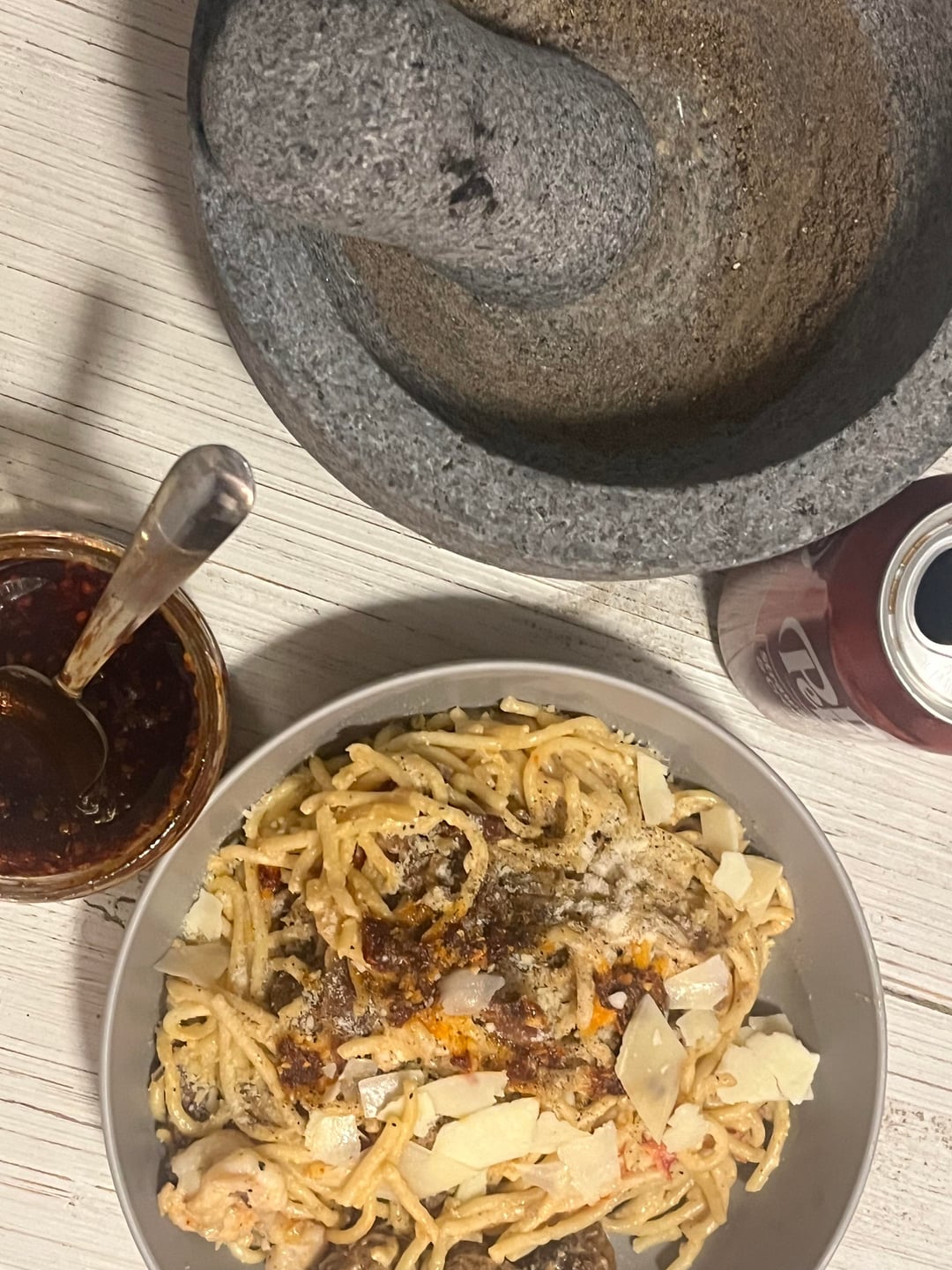 I love chili oil with my pasta is the best . I added meatballs. Shrimp. And Chipotle bacon . Deliciousby blackw-idow PastaWrite A CommentYou must be logged in to post a comment.
