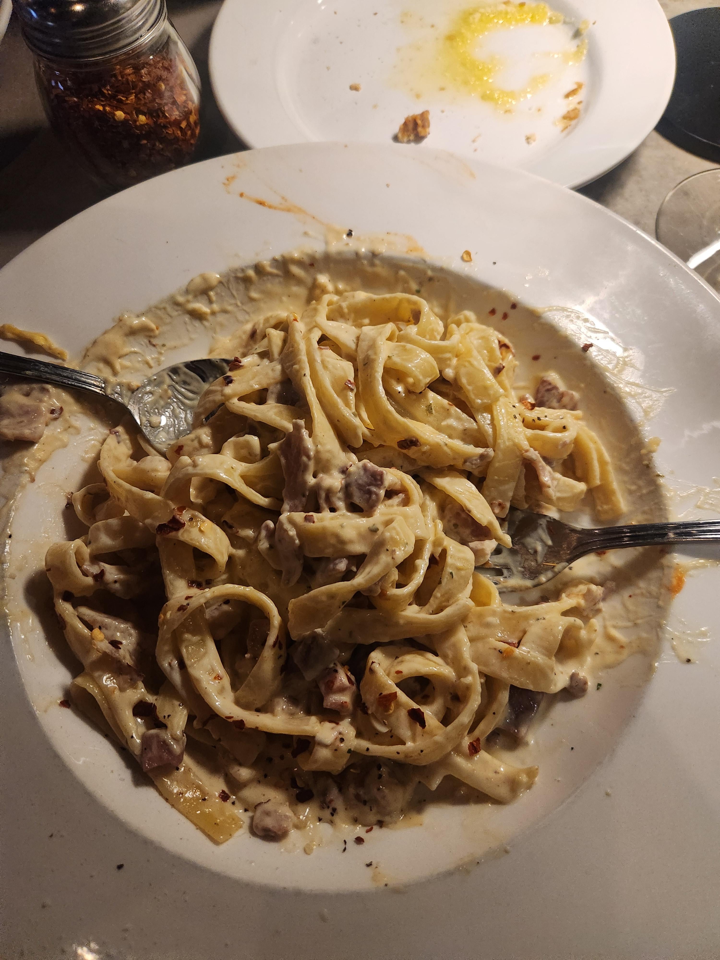 Fettuccine carbonara – thoughts? New restaurant for us and it was new on their menu.by Dangerous_Original29 Pastarestaurant 2 Comments processwater 2 days ago Food is something better tasted than seen cyberfrederic 2 days ago Looks messy.Write A CommentYou must be logged in to post a comment.