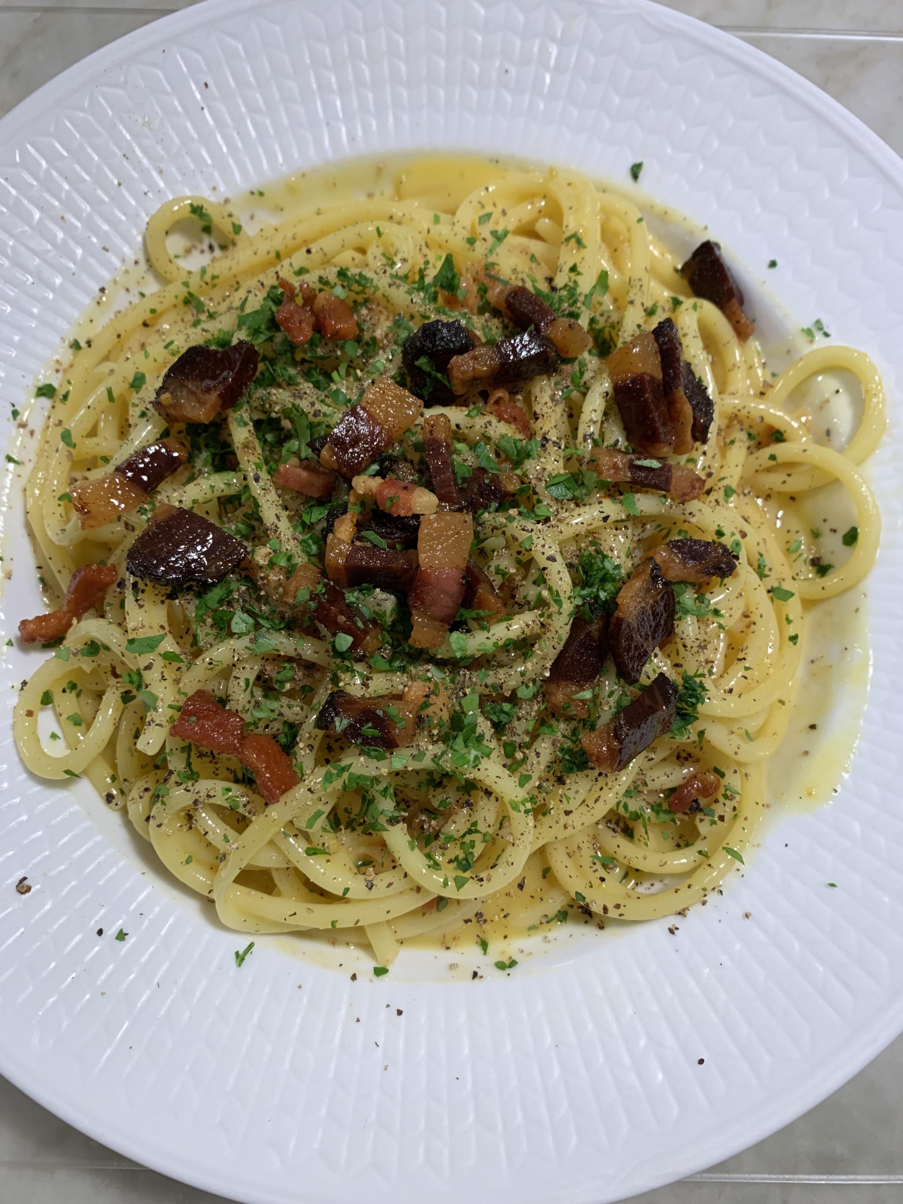 I used bucatini pasta from Gentile which is probably the best I’ve used – was able to get some for a good price recently.