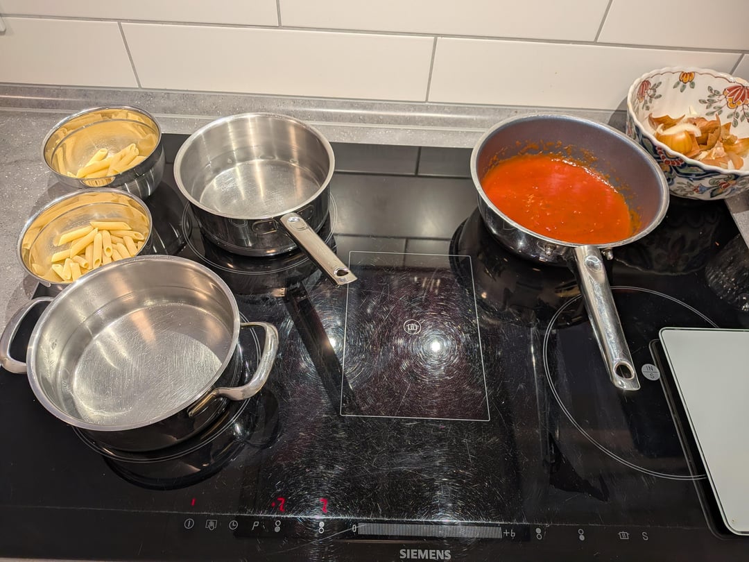 Same as the last time: I made a very simple Sugo of passata, garlic, onions and some vegetable broth. All pasta was cooked to al dente according to the packaging and finished with some pasta water and a ladle of sauce. Same size of pan, amount of fresh water and salt. Same weight of pasta cooked each time.