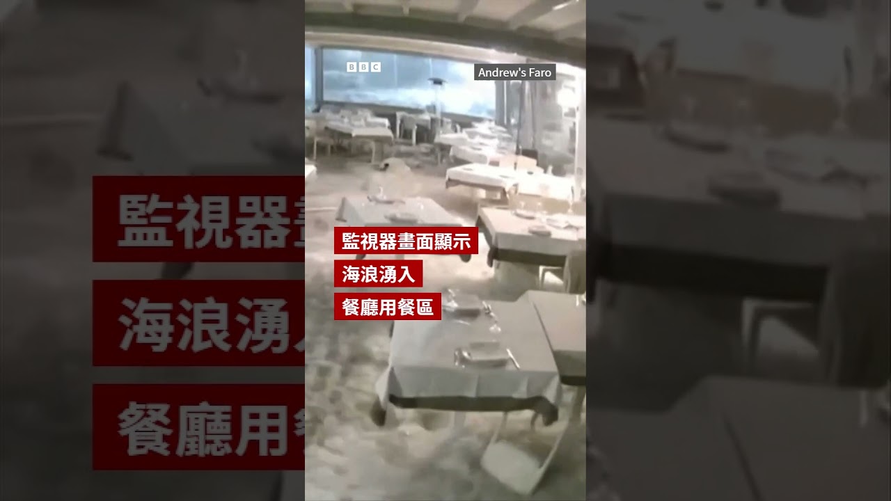 監控畫面顯示,當強烈的地中海風暴「哈里」氣旋侵襲義大利南部時,西西里島卡塔尼亞一家海濱餐廳的用餐區被巨浪衝破並淹沒。