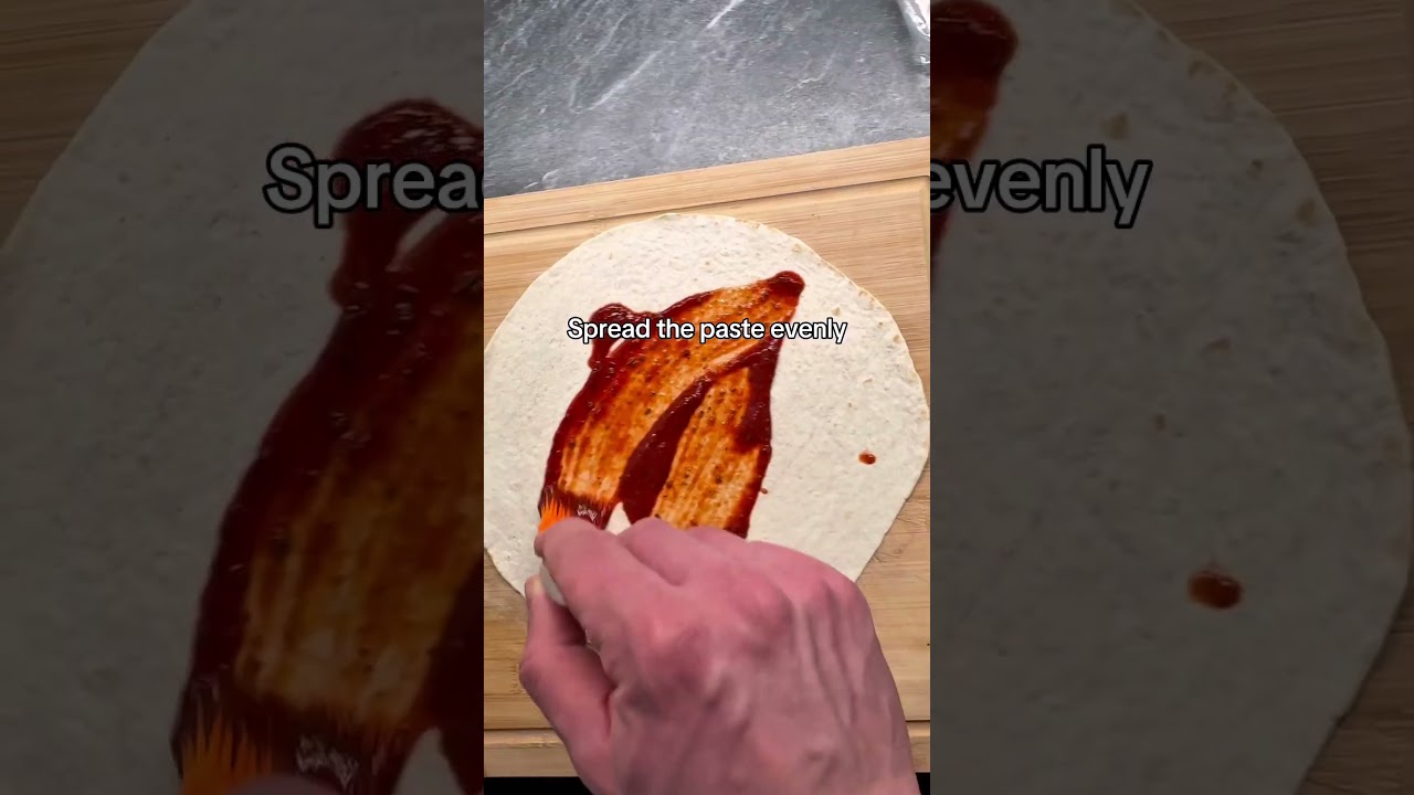 Mix the tomato paste with seasoning and salt, then spread evenly over the tortilla.