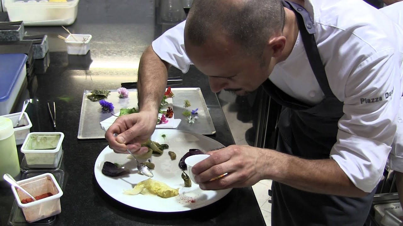 Chef Patron Enrico Crippa prepares a dish at his 2 Michelin star Piazza Duomo in Alba, Piedmont, Italy. Read and see more at wbpstars.com – only about the …