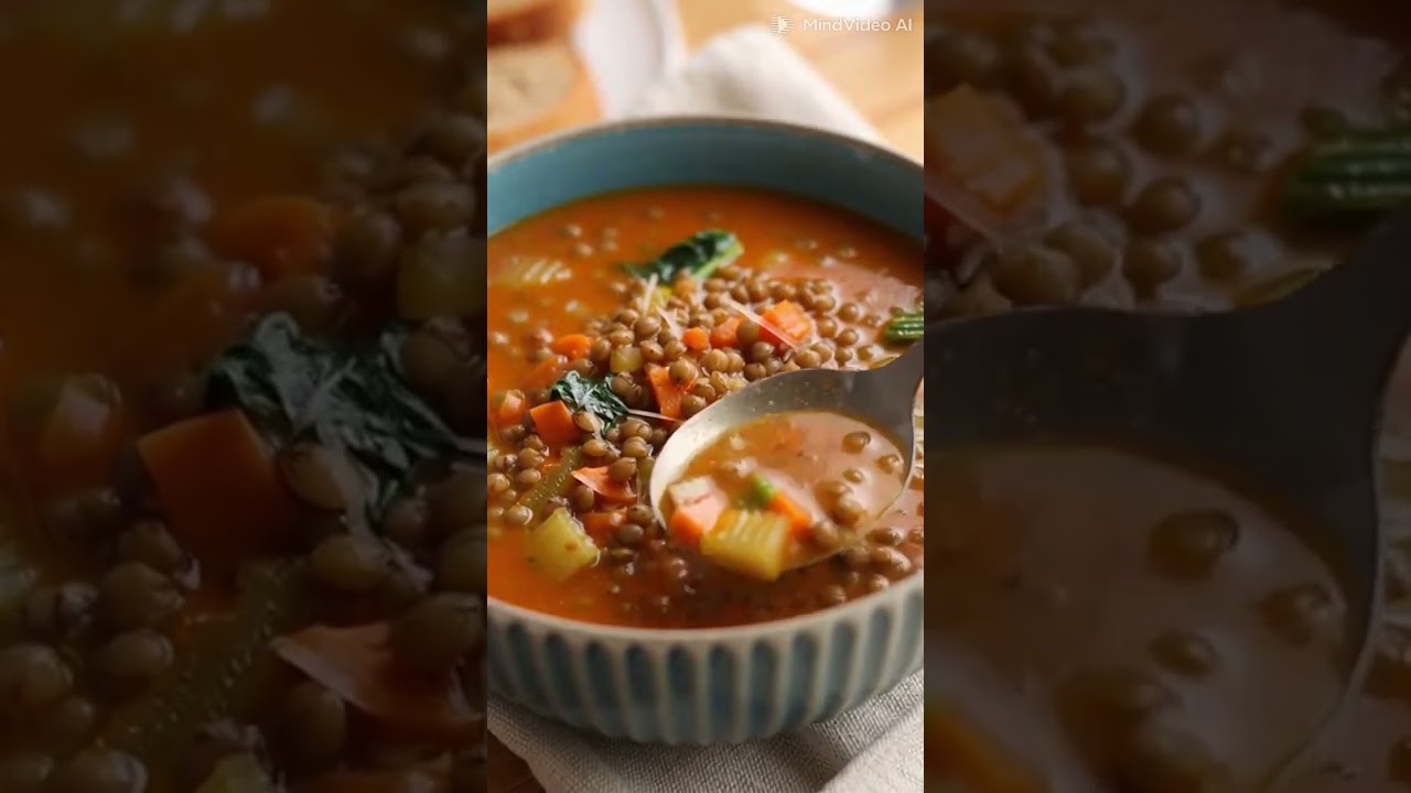 This warming one-pot soup features protein-rich lentils simmered with vegetables, garlic, tomatoes, and herbs for a satisfying, home-style meal.