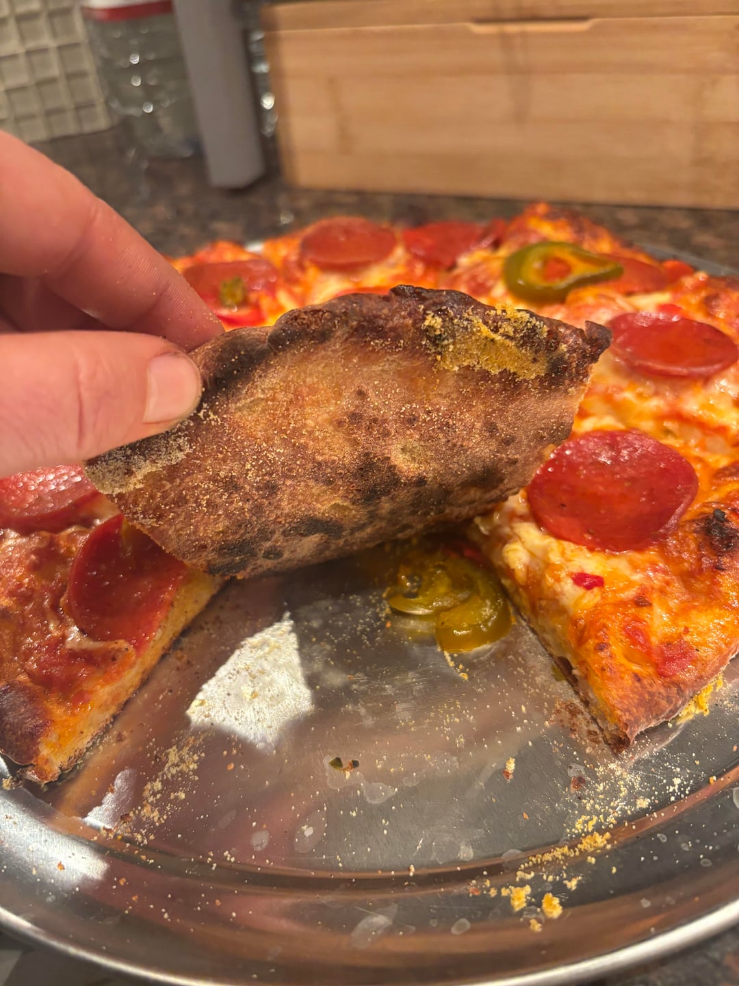 First time using high gluten flour. I like the results. Cheese, pepperoni, cherry pepper pizza.