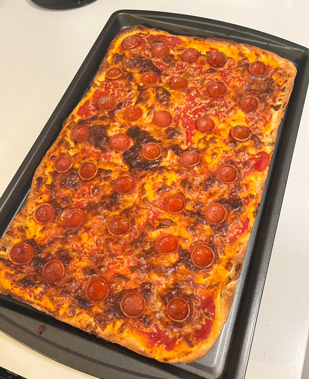 The pizza was alright the day of baking but it really shines the next day, eaten cold, the crust is AMAZINGLY Flakey. To be honest it’s a 10/10 for uniqueness & decadence. But it’s no where near the best oven pizza I’ve had. Also, it’s a very fatty pizza.