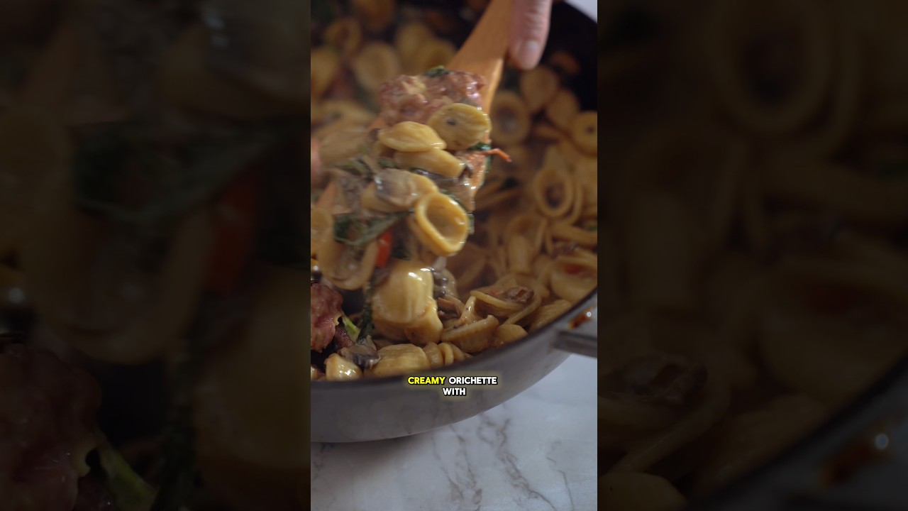 Creamy orecchiette with sausage, mushrooms, and spinach.