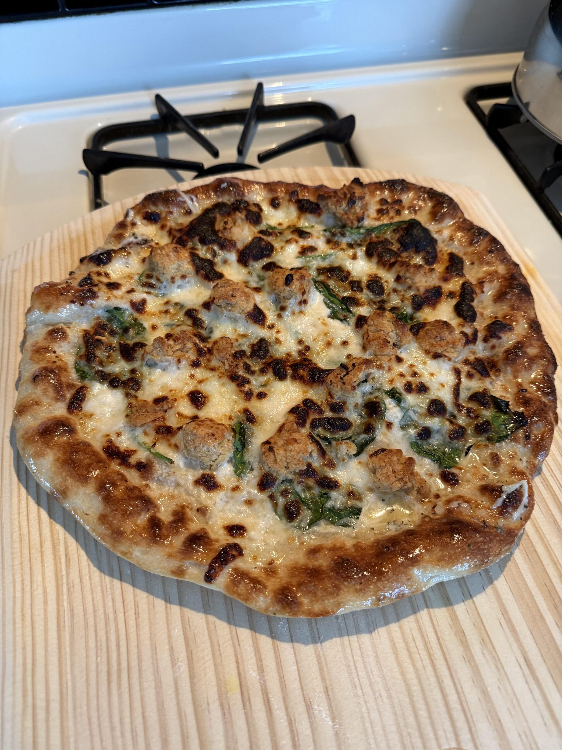 Today’s pizza is my wife’s dominoes order! Alfredo sauce with crispy chicken and spinach. Of course the garlic butter had to be brushed on to the crust as well. by Kyle5199 NORMAL OVENpizzaWrite A CommentYou must be logged in to post a comment.