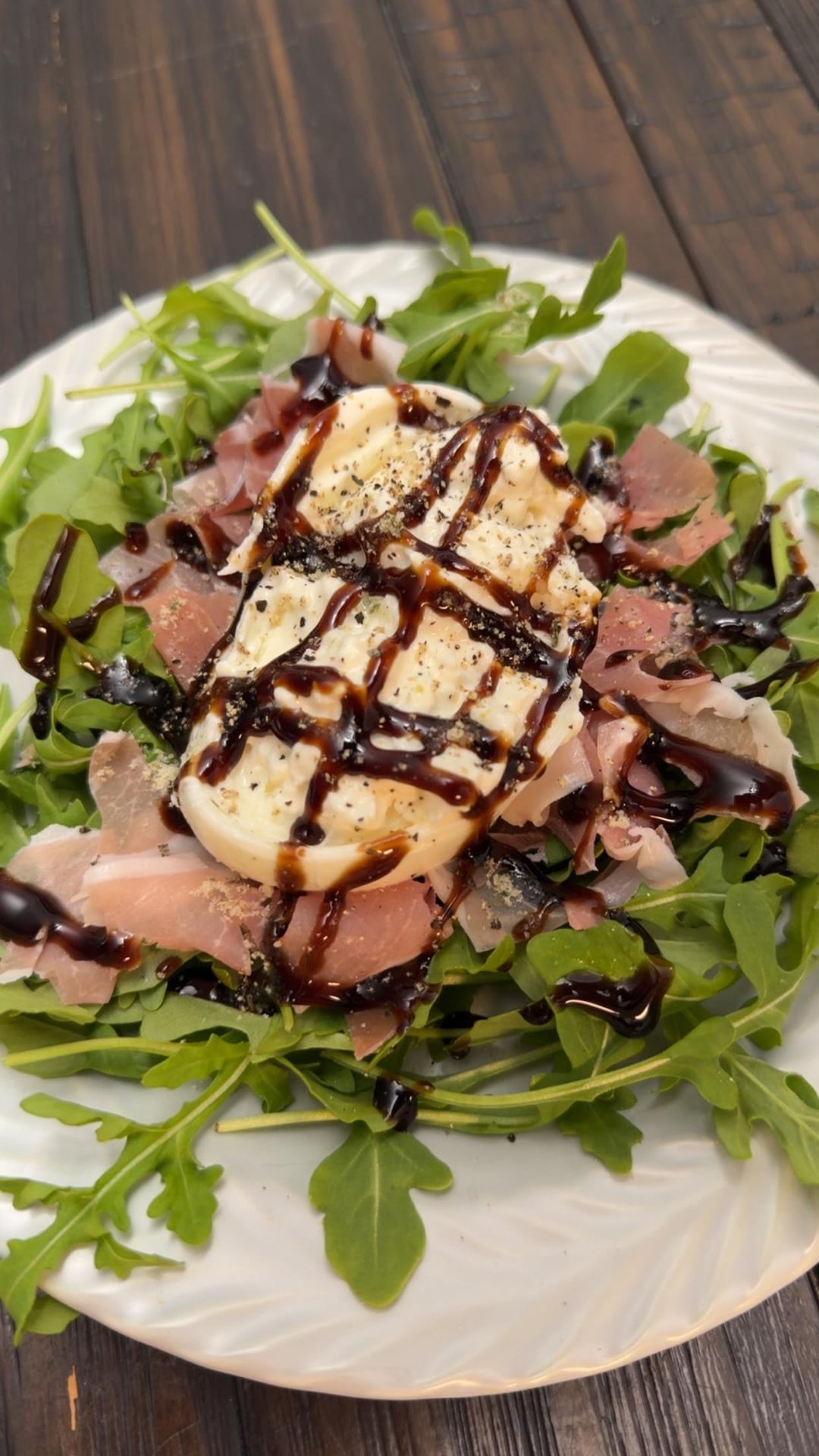 And we started with an arugula, prosciutto, burrata salad with balsamic glaze. What a happy end to a long week.