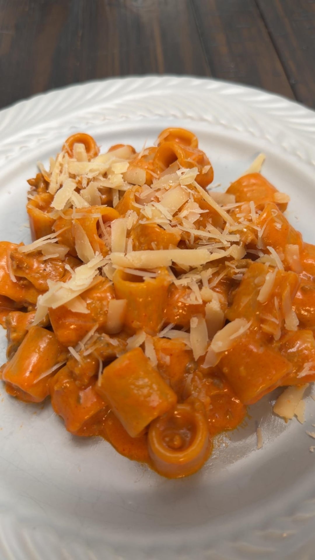 My first time making homemade vodka sauce and was it worth doing! I love a good vodka sauce and store bought just never has been to my liking. This sauce was just the right amount of sweet, spicy, creamy, and decadent. Paired with the mezzi rigatoni pasta, my wife said this was one of the best dishes we have ever made.