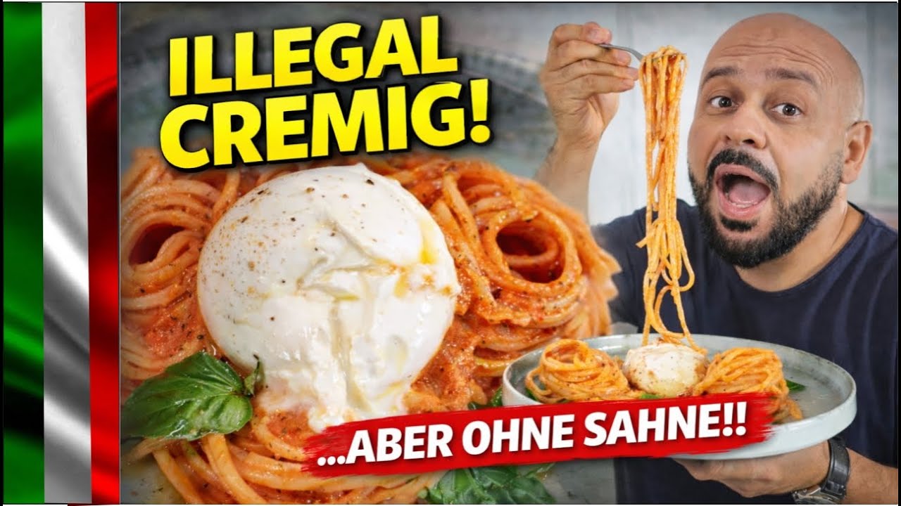 Illegal cremige Pasta – aber OHNE Sahne! 🍝🔥 Diese Burrata Pasta mit Tomaten ist der Beweis, dass man für eine perfekte Cremigkeit keine Sahne braucht. In diesem Video zeige ich dir ein einfaches italienisches Pastarezept, das nur mit San Marzano Tomaten, Burrata, Olivenöl, Pasta-Wasser und einem selbstgemachten Chili-Knoblauch-Öl unglaublich intensiv und cremig wird.