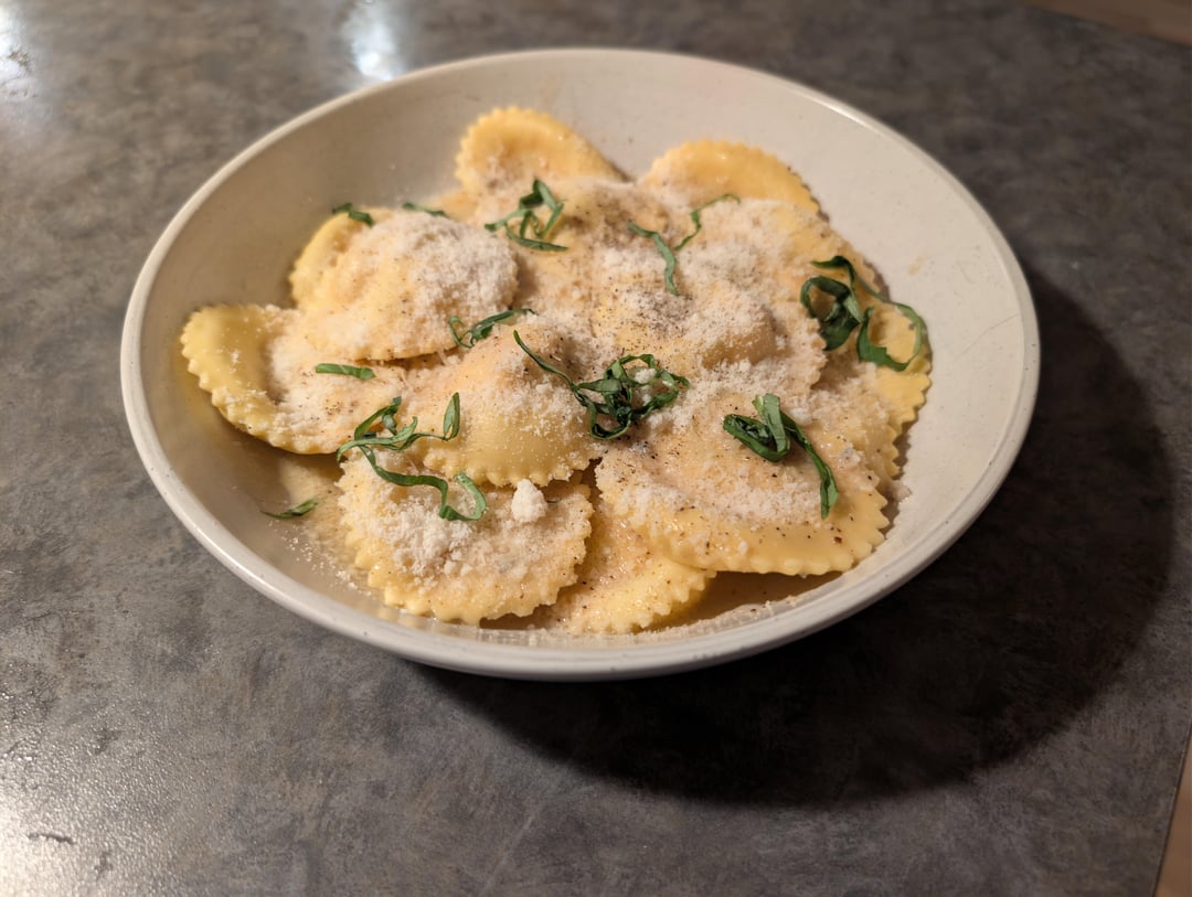 recipe was not measured except the doughdough: 100g 00 flour, 2 eggsfilling: ricotta, nduja, zest from lemon, basilsauce was a sort of beurre blanc with some pepper and lemon, topped with some parmigiano reggianoby mbod Homemade Dish - From ScratchPasta 1 Comment mbod 3 days ago Correction: 200g flour and 2 eggs *Write A CommentYou must be logged in to post a comment.
