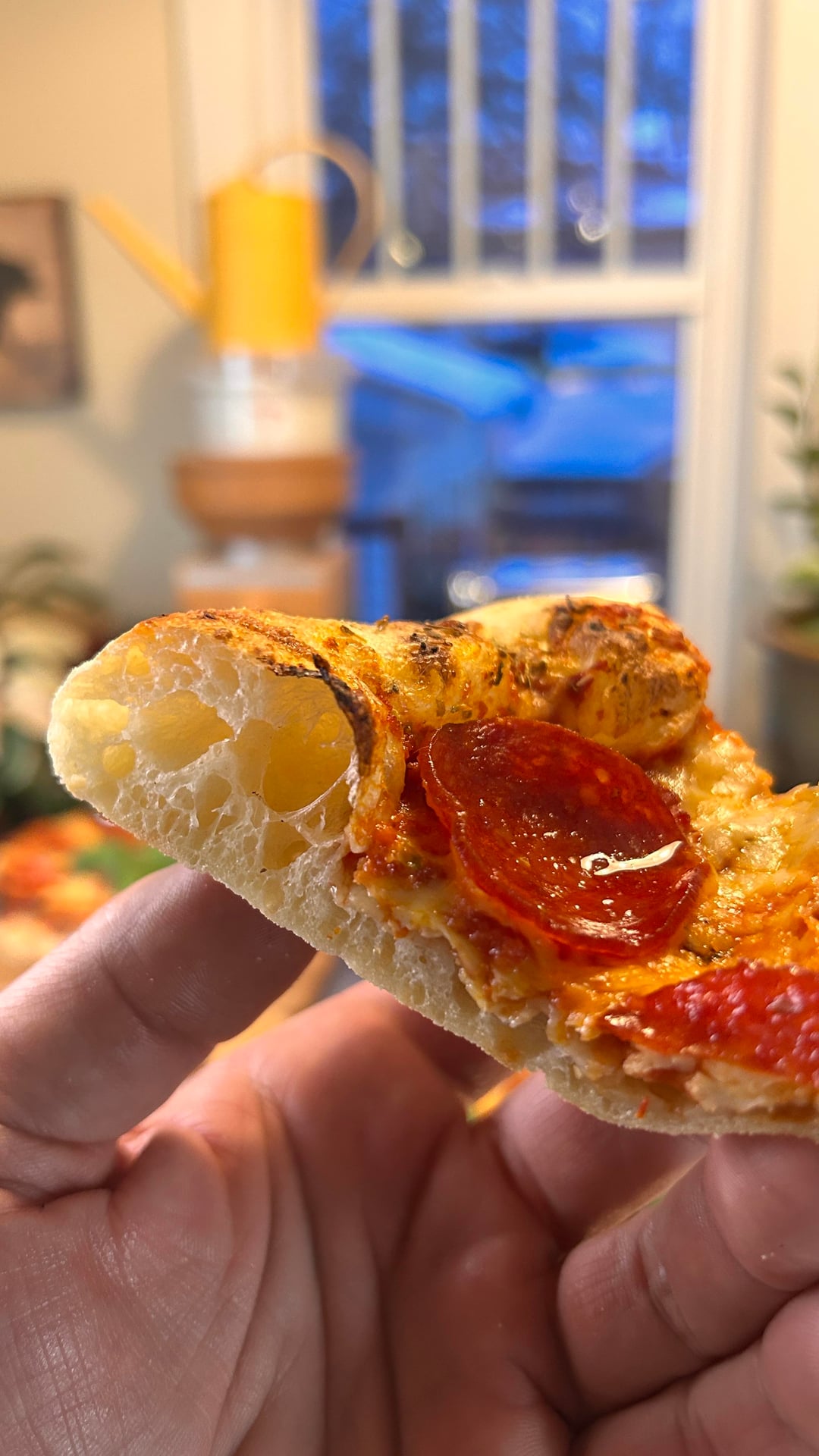 80% hydration dough. Baked at 500F on a pizza steel. 4 minutes bake, 1.5 minutes broil.by PrairieBreadLab NORMAL OVENpizza 1 Comment texxasmike94588 2 days ago High-hydration dough makes a soft but crispy crust after 3-5 minutes on my 1/2-inch baking steel.Write A CommentYou must be logged in to post a comment.