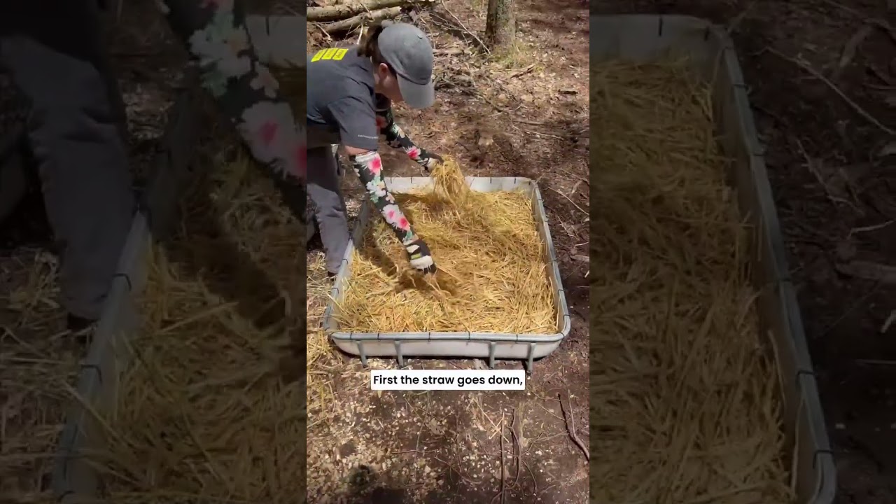 Mushroom beds from the ground up in the woods. We begin by clearing a path, pre-soaking straw, and layering straw and wood chips to create a healthy substrate for mushroom growth. We then evenly spread sawdust spawn throughout the bed, followed by additional layers of straw and wood chips before watering everything in thoroughly.