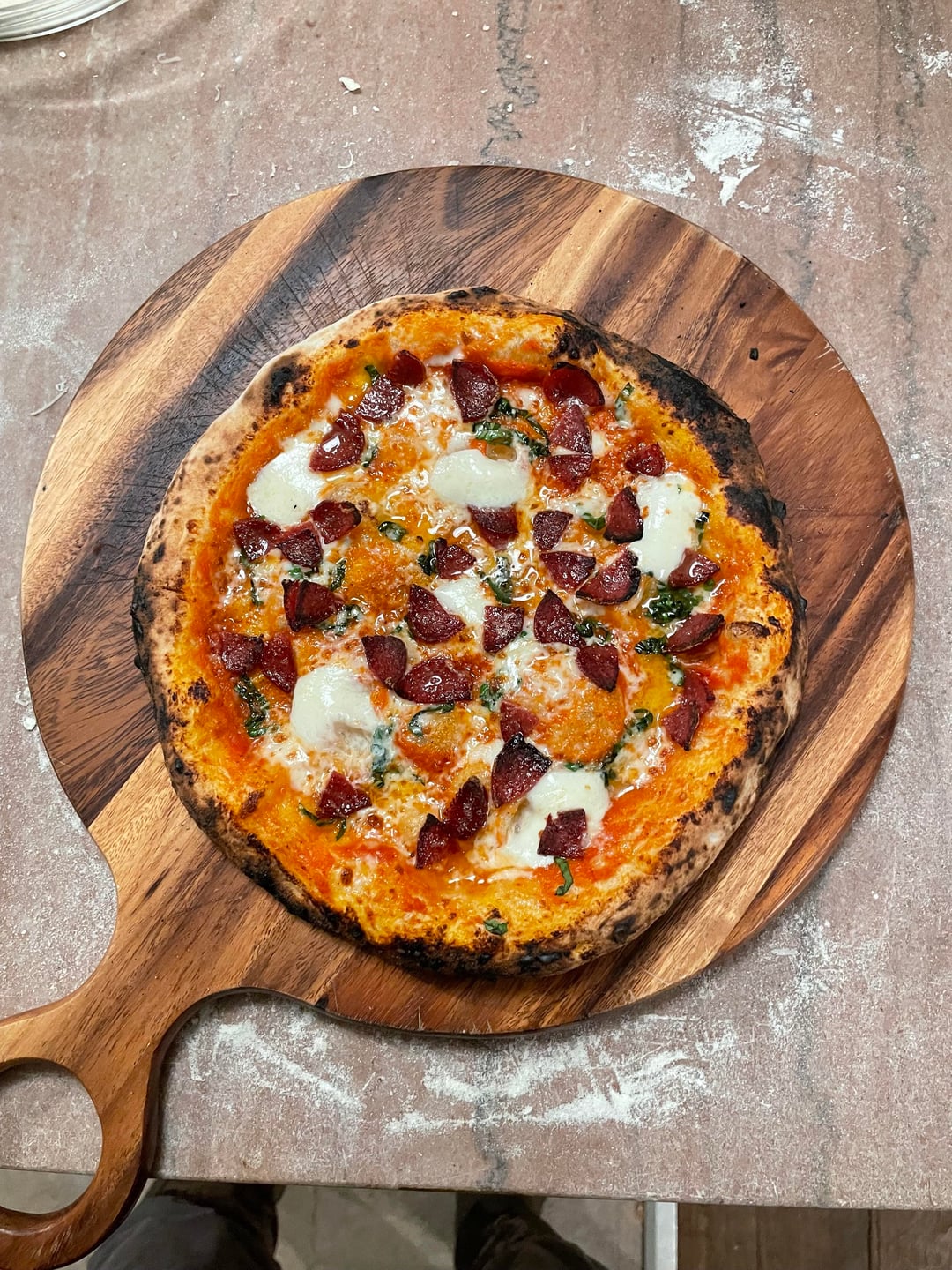 Low moisture mozz, fresh mozz, pecorino romano, basil, quartered pepperoni, red sauce w/ oregano & garlic.Second photo is the same without the fresh mozz or pepperoni.by surprisepinkmist outdoor ovenpizza 1 Comment MagazineDelicious151 2 days ago Looks great, enjoyed by now I assume.Write A CommentYou must be logged in to post a comment.