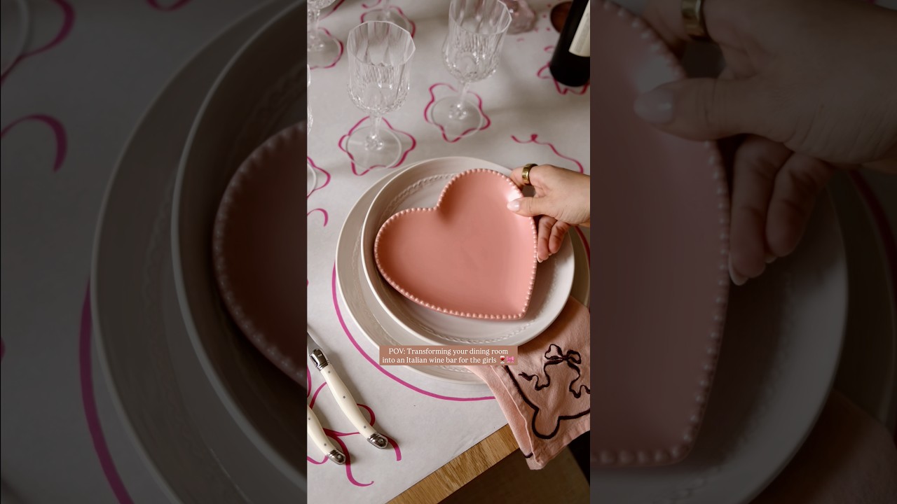 Behind-the-scenes table setting for our monthly Ciao & Cheers themed dinner party, featuring a Galentine’s Day tablescape inspired by a rustic Italian wine bar with modern details. This post highlights the prep process, tablescape styling, and the final reveal of a warm, whimsical dinner party setup designed for hosting and entertaining.
