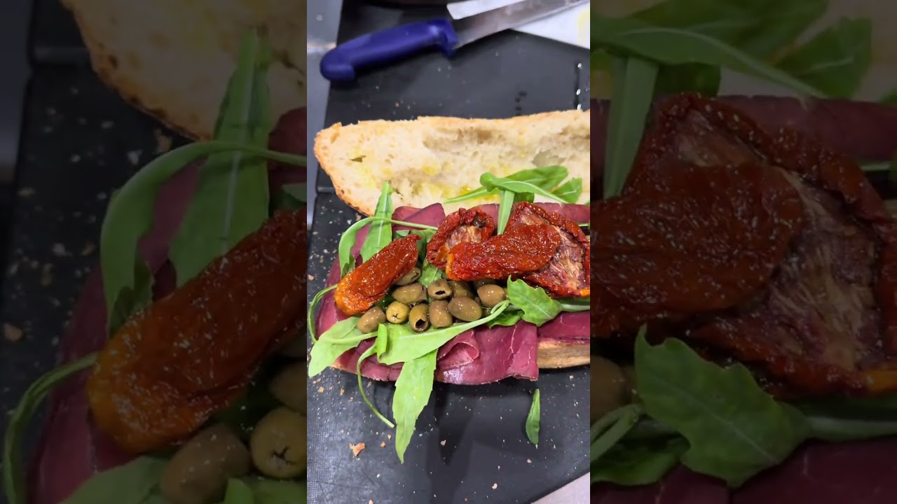 Troppa roba, olive e pomodori uccidono il gusto della bresaola. Questo è un panino favoloso nella sua semplicità : bresaola, rucola e mozzarella Stop! 👍