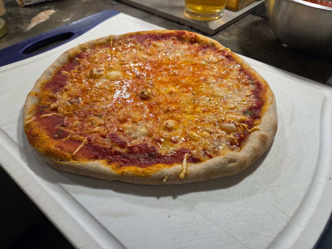 It was by far taste wise one of the best pizzas i made! The combination of Yeast and sourdough led to a soft and fluffy yet nicly fermented pizza