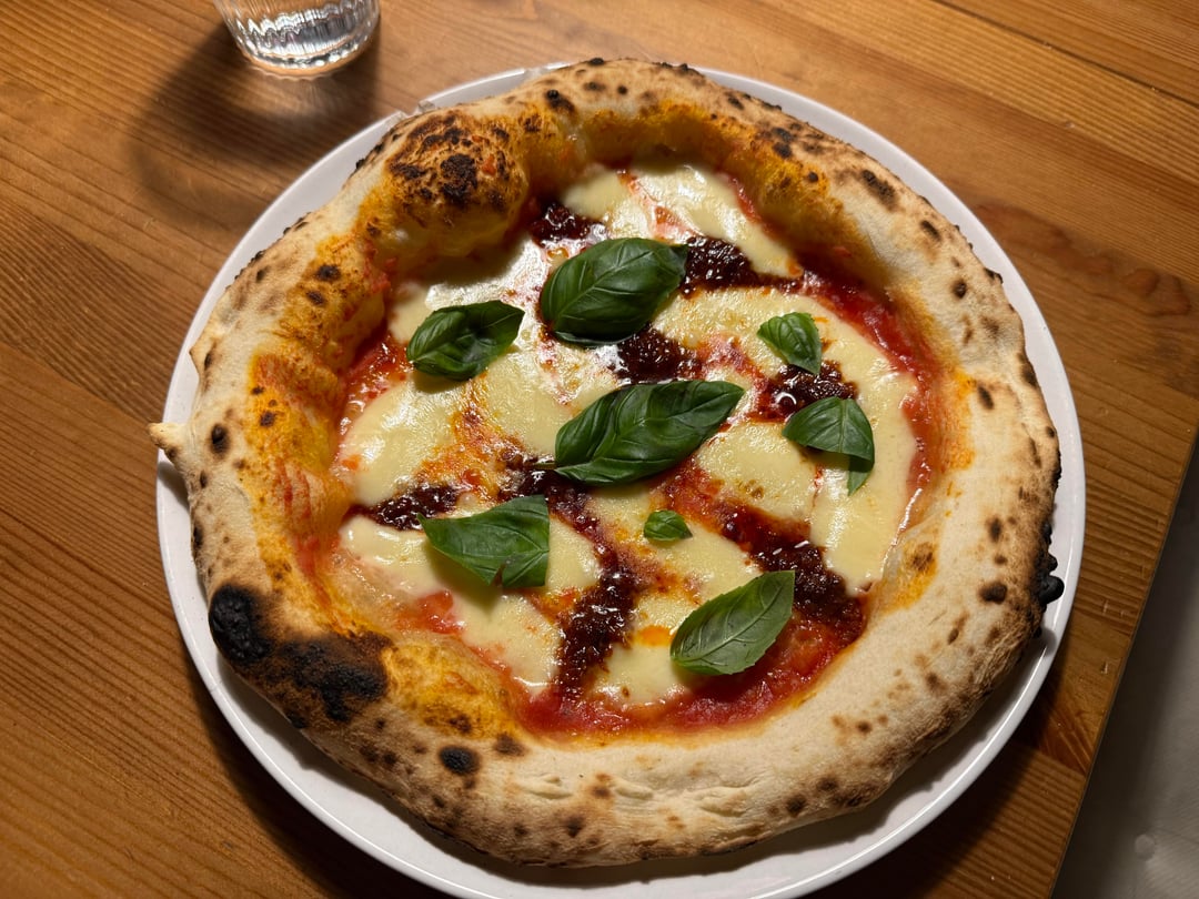 Recipe was calculated using Pizzapp with Liquid Sourdough as yeast choice and upping the yeast amount in settings to +50%. Comes out great every time. Also busted the myth for me that pizza dough needs a lot of kneading. If you ferment for longer than 5 hours, gluten will basically form by itself biochemically, no need for mechanical intervention. I also found that I like the taste of room temperature fermentation more than that of a cold ferment. Give it a try!