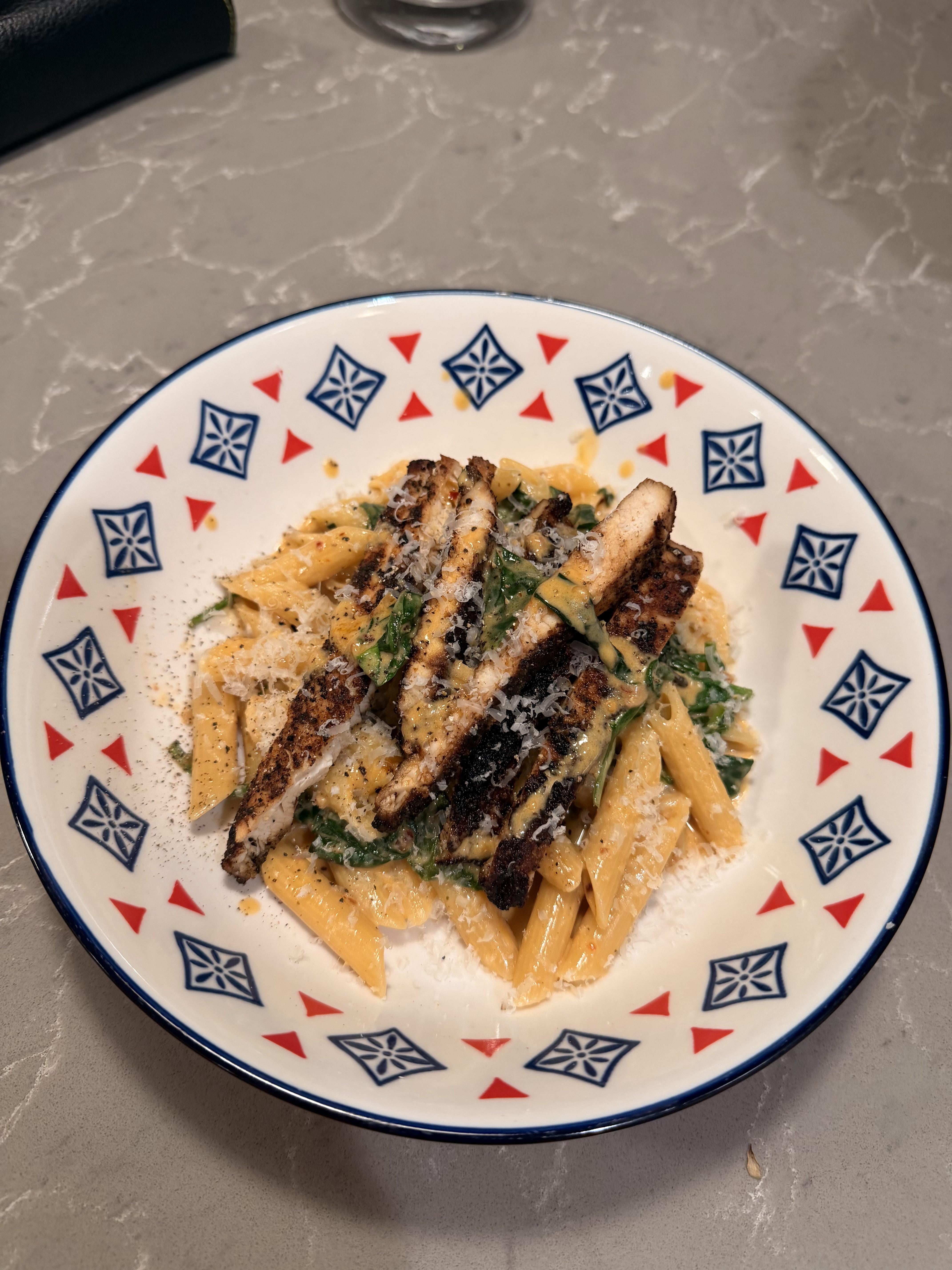 [homemade] chili crisp Alfredo penne with spinach and blackened chickenby PhilosophersPants Homemade DishPastaWrite A CommentYou must be logged in to post a comment.