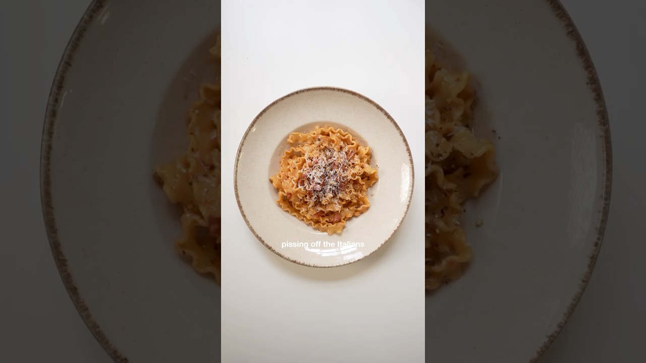 ✨Ingredients✨ 200g mafaldine or spaghetti 2-3 cubes red fermented tofu (plus 1–2 tbsp brine, to taste) 2 large egg yolks 50g grated perconiro 100g pancetta 1 echalion shallot, diced 2 cloves garlic, minced pinch of chili flakes olive oil salt, pepper to taste . ✨Instructions✨ 1. In a bowl, mash the fermented tofu until smooth, whisk in egg yolks, pecorino, and some tofu brine. 2. Heat a pan over medium heat and add the pancetta, Cook until the fat renders and the pancetta is golden and crisp. Remove half and reserve for topping. 3. Reduce the heat, add some olive oil if needed, then add the shallot, garlic, and chili flakes, and sweat genty until soft and fragrant, turn off the heat. 4. Boil pasta in well-salted water until just al dente, reserve at least 1 cup pasta water, then drain. 5. In the bowl with the tofu–egg mixture, add about half of the hot pasta and toss until well coated. 6. Add this mixture back to the pan along with the remaining pasta and a splash of pasta water. Toss vigorously off the heat, adding more pasta water as needed, until the sauce is glossy, creamy, and fully emulsified. 7. Plate immediately, and finish with pancetta, more percorino, chili flakes and black pepper. Enjoy!