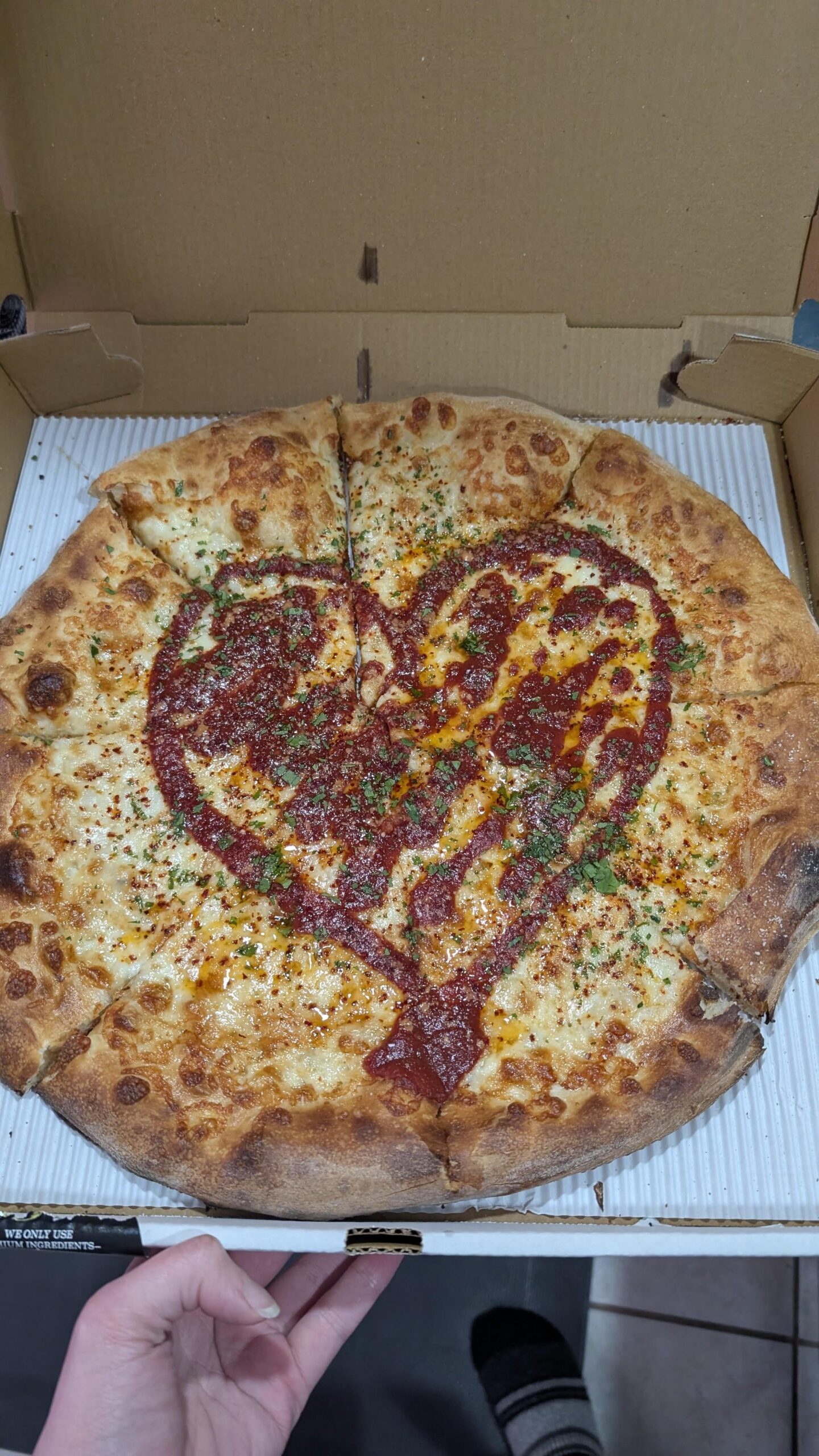 Garlic butter crust topped with mozzarella, Parmesan, and provolone cheese, garnished with a spicy black garlic marinara and Korean chili flakes. by AbjectFoot8711 pizzaTakeawayWrite A CommentYou must be logged in to post a comment.