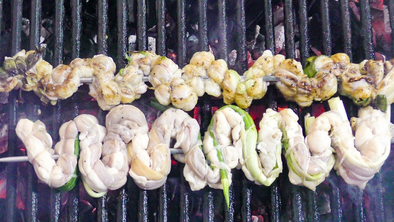 The stigghiola is a Sicilian food specialty, typical of the streets of the city of Palermo. It consists of guts (usually of lamb, but also of goat or chicken) which are washed in water and salt, seasoned with parsley and often with onion and other pot herbs, then stuck on a skewer or rolled around a leek, and finally cooked directly on the grill. The dish is generally prepared and sold as a street food.