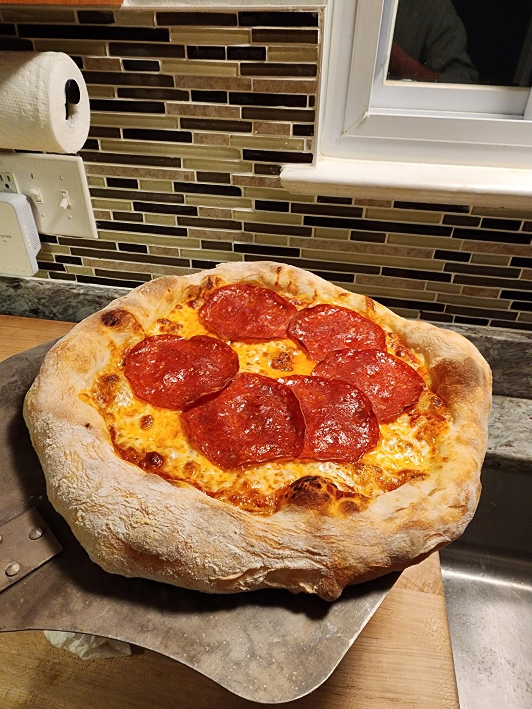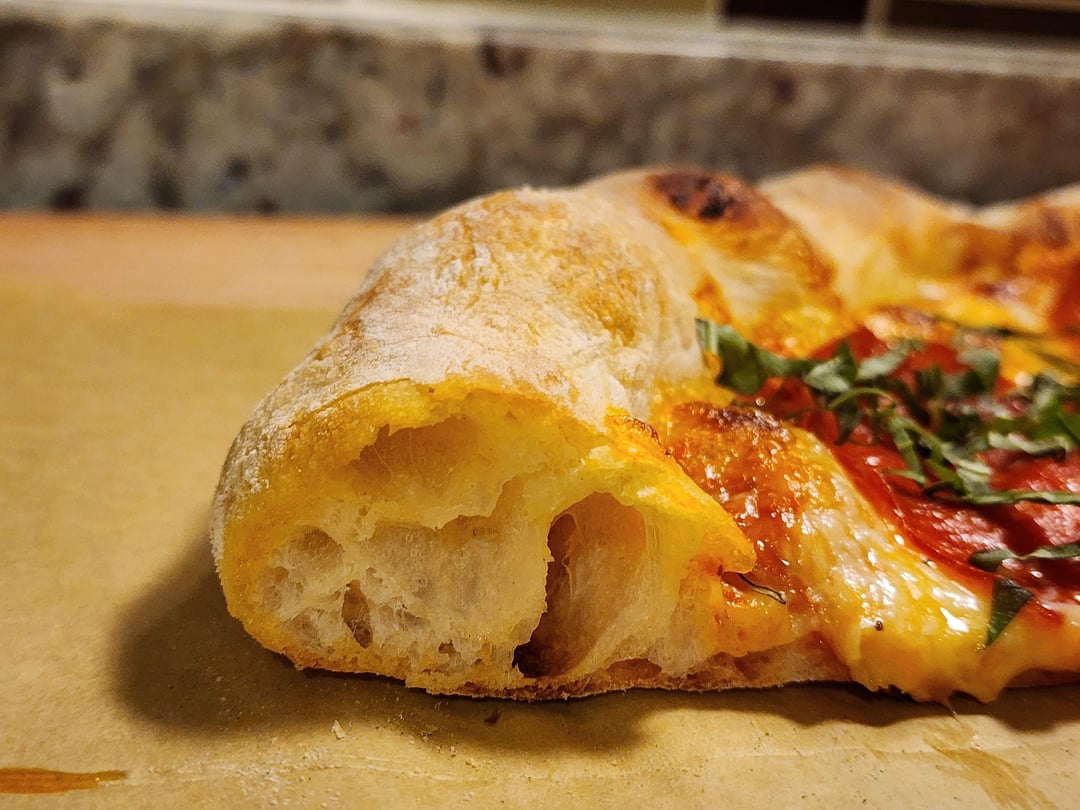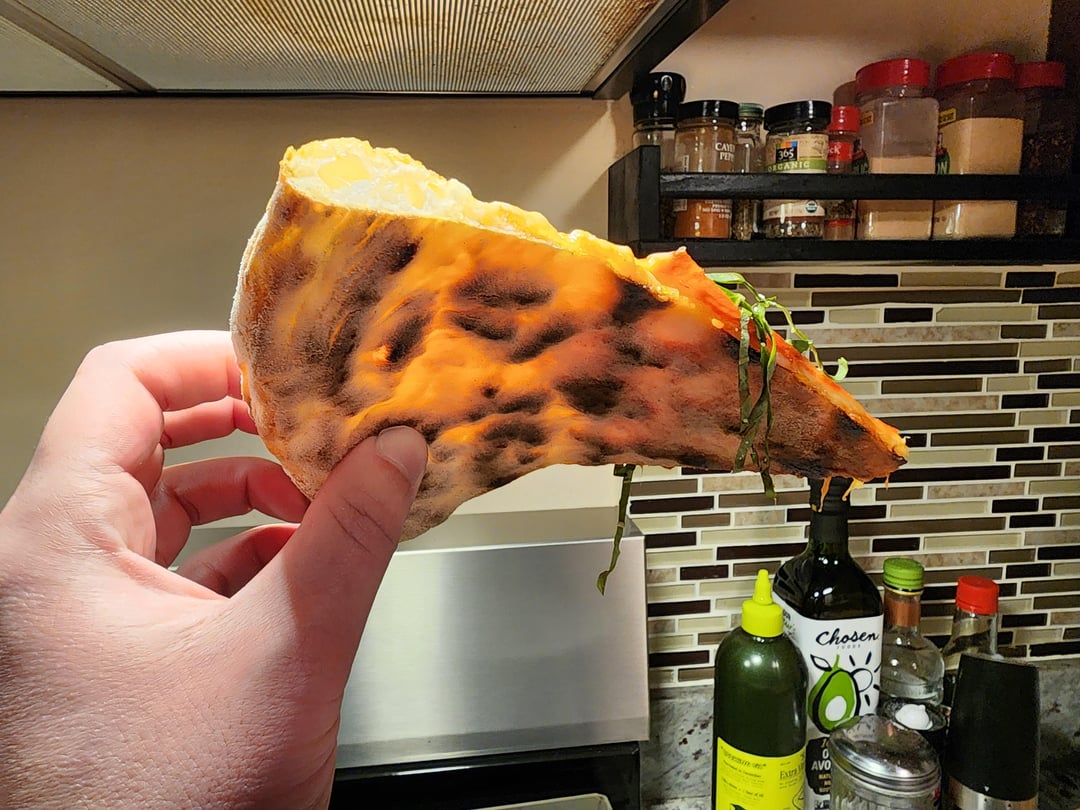 The higher hydration combined with a cold proof gave me really good leoparding. Probably the best I've gotten from a home oven so far.