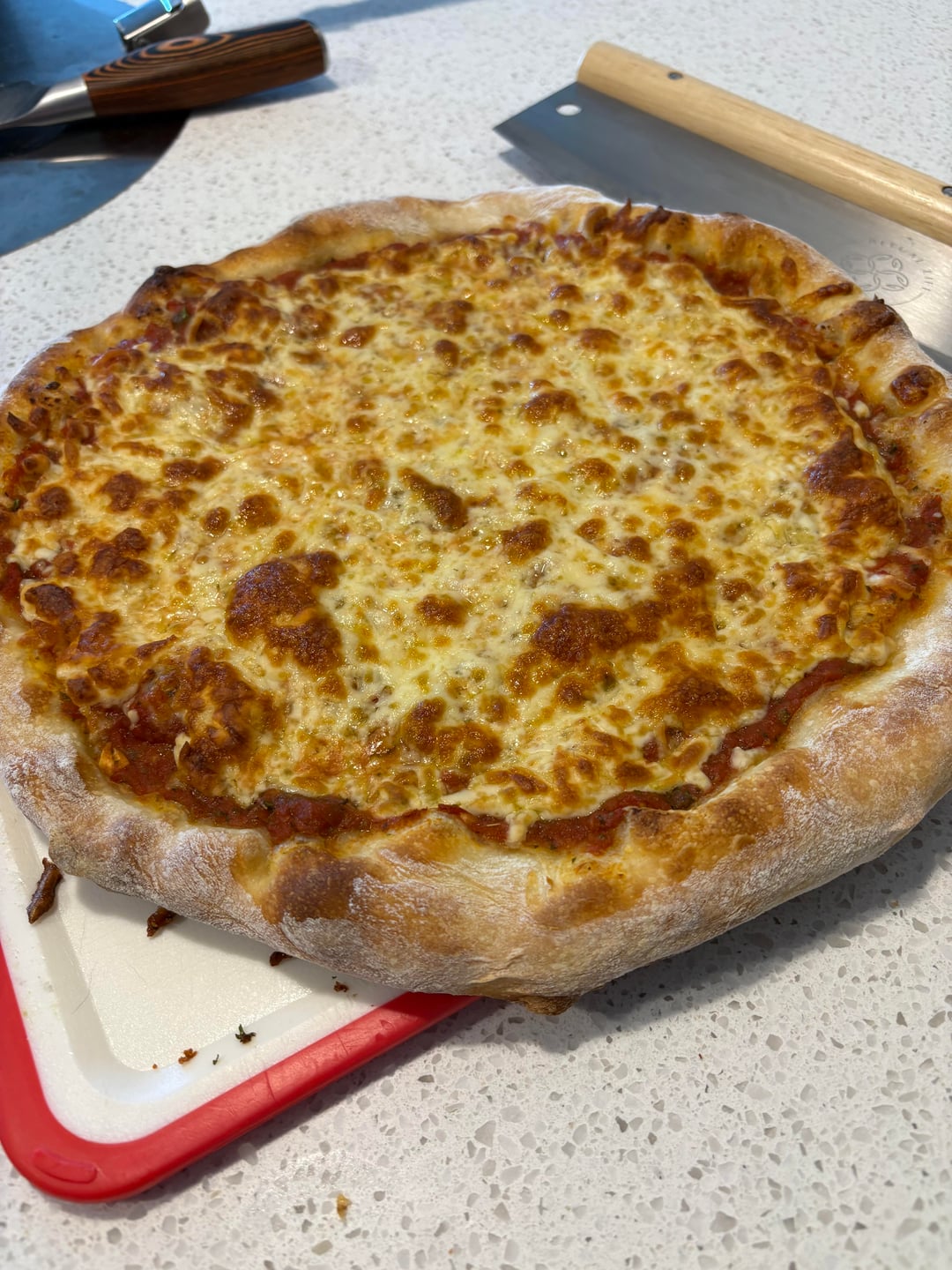 4 day cold fermentation, first pic is a cheesy garlic bread pull apart (my take on dominos cheesy bread) 2nd is a classic cheese pizza, 3rd pep and cheese everything was outstanding, curious for feedback