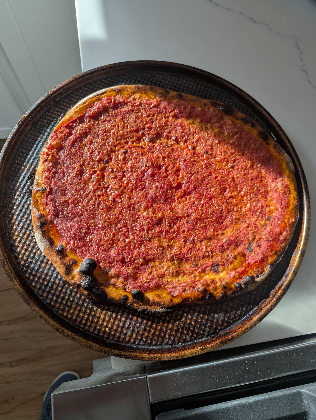 First post after following for a while now. This is my first attempt at a New Haven-esque tomoato pie. Right now I'm using ItsDoughGuy's recipe and it's been extremely versatile. Cooked in my home oven on a pizza stone.by Kekambass NORMAL OVENpizzaWrite A CommentYou must be logged in to post a comment.