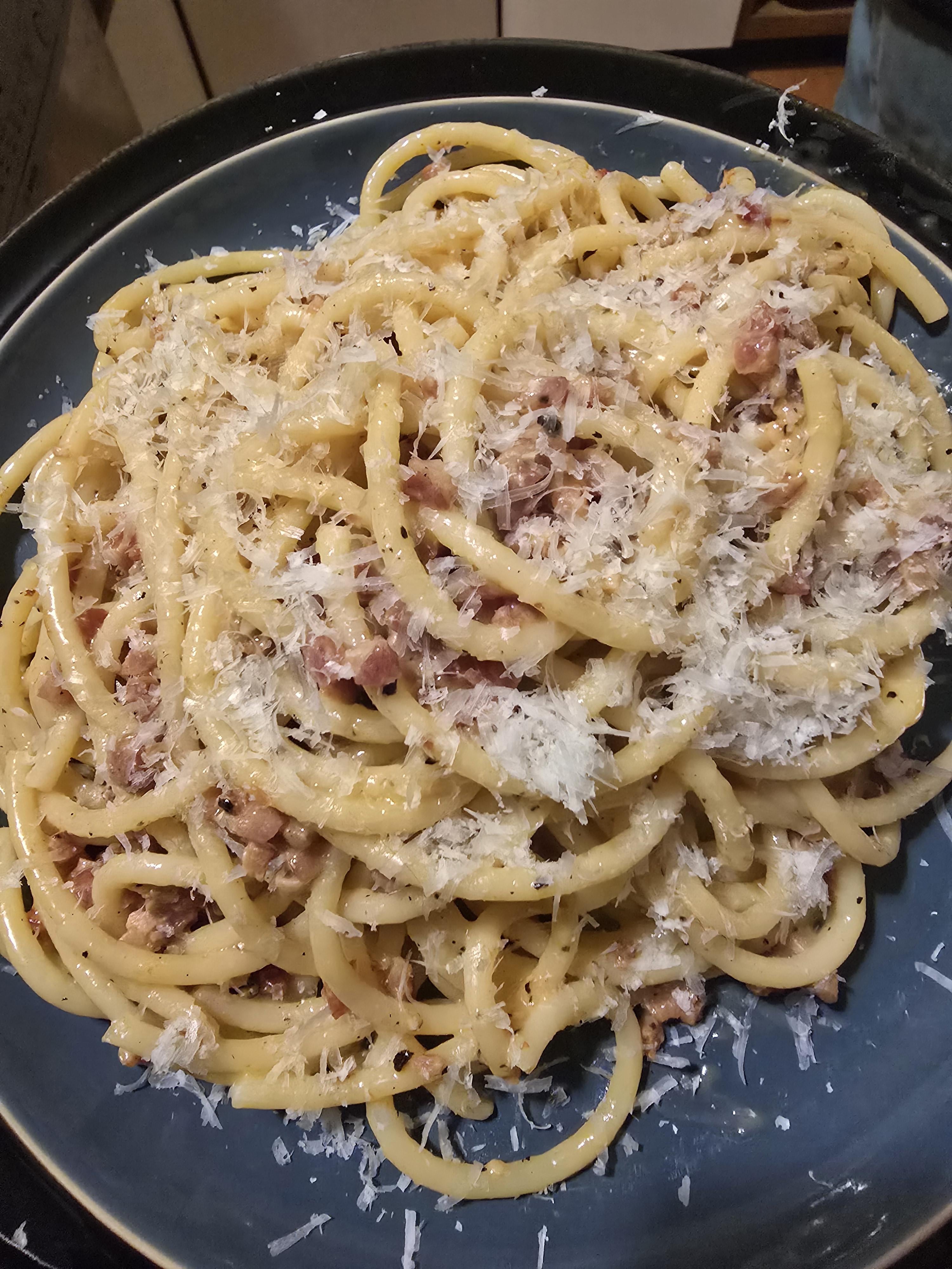 Cheap pre-cut pancetta, mid range bucatini. Turned out pretty good anywayAdvice for improvements appreciated! by stale_air_ Homemade DishPastaWrite A CommentYou must be logged in to post a comment.