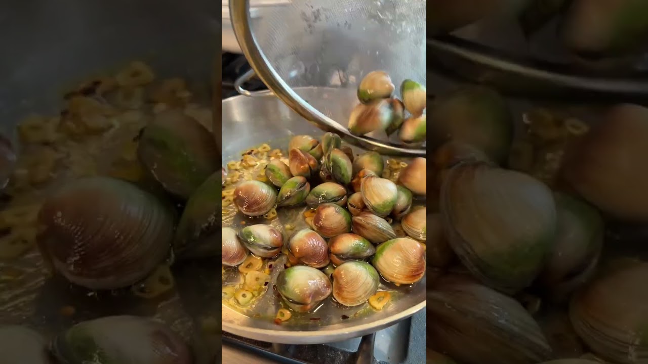 green spaghetti with clams🌿 full recipe for free on substack, where you can ALSO find my rant/article about food media 🙂