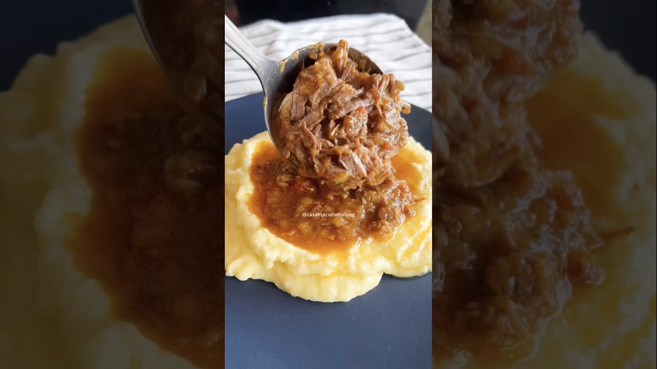 Polenta cremosa com carne de panela