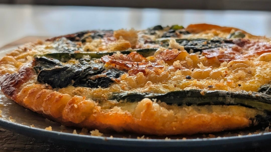 I had a little leftover fusilli with kale (garlic, anchovies, calabrian chilies). I mixed it with three eggs and some leftover mozzarella ends from making pizza. Topped with bread crumbs from leftover focaccia.by Lubberworts PastaWrite A CommentYou must be logged in to post a comment.
