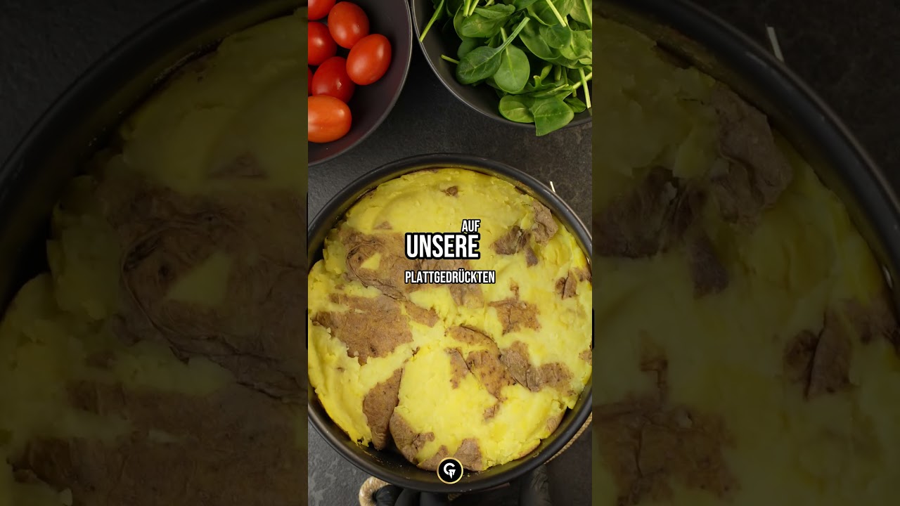Zubereitung: bei 200 Grad Ober/Unterhitze erst den Kartoffelboden ca. 15 min backen, dann belegen und weitere 30 min backen.