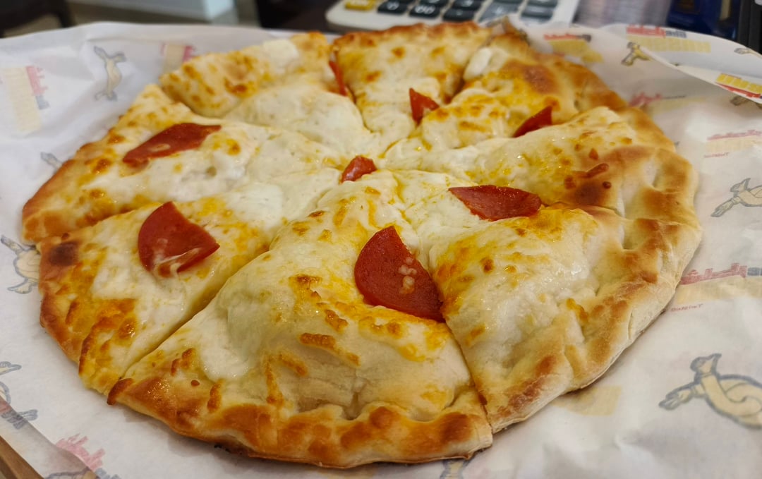 so i asked for a breakfast pie, saw on the menu they have a ''duplex'' as in cheese stuffed pie with thyme on the top, asked if i can get cheese on top and a few slices of pepperoni, the man agreed for $2 extra.