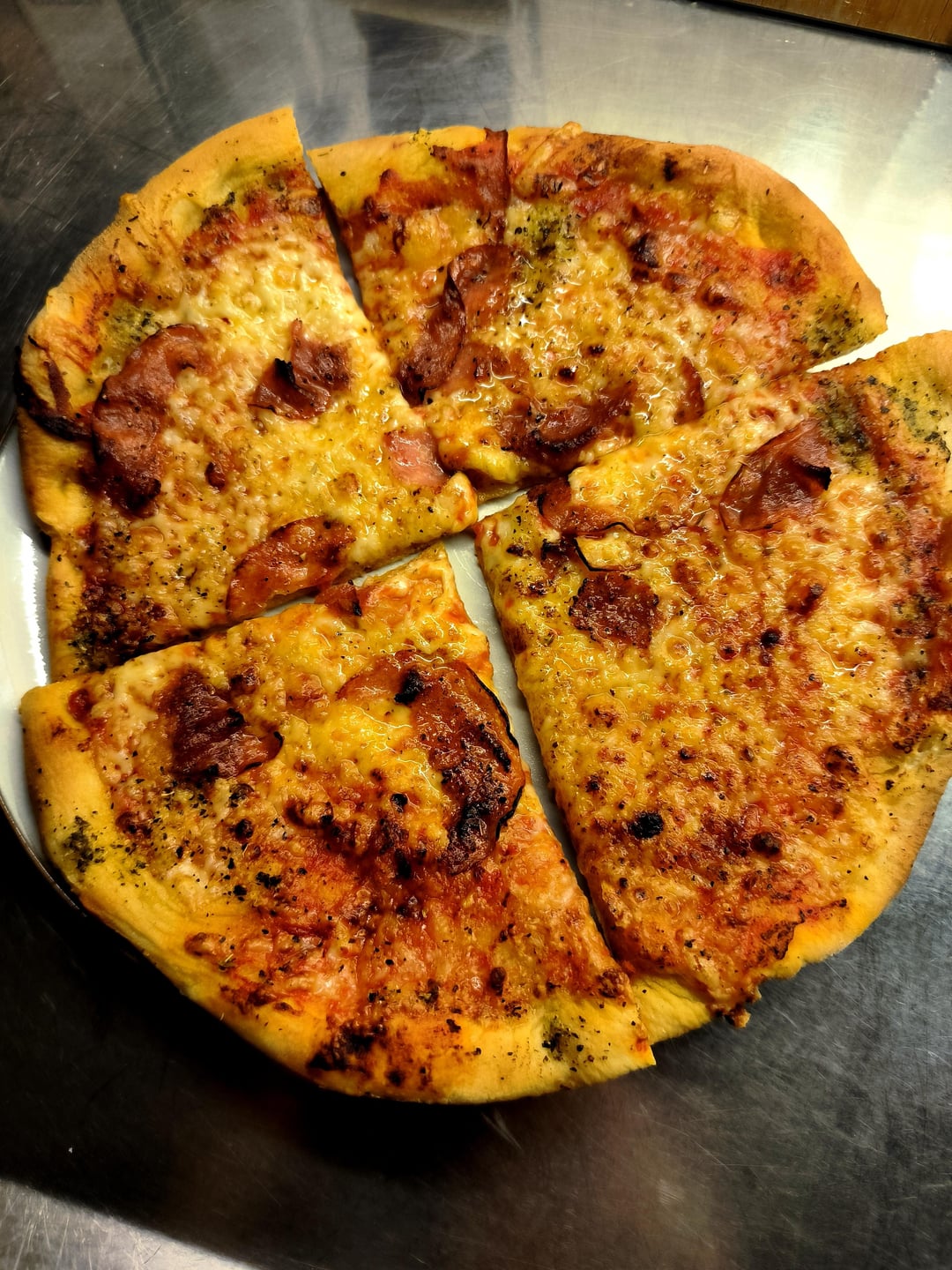 Not the prettiest, but the flavor was amazing. Cheese, tomato sauce with chili flakes, thinly sliced smoked salami and finished with a brush of garlic oil.by Temporary_Parking_95 NORMAL OVENpizzaWrite A CommentYou must be logged in to post a comment.