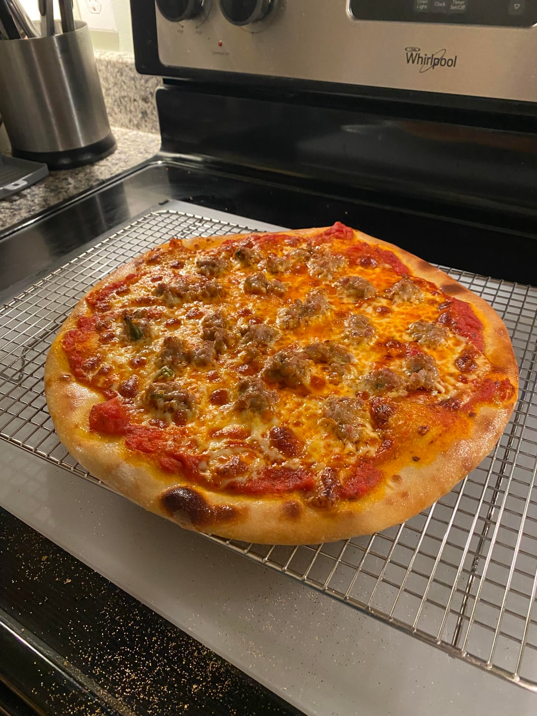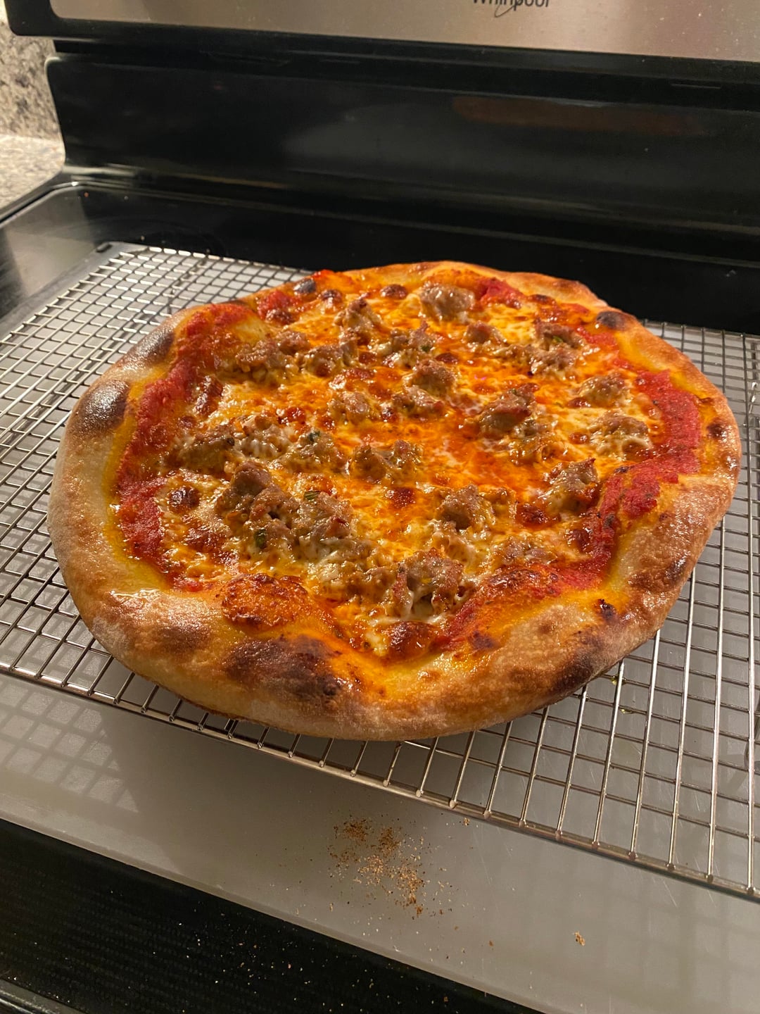 The crust has been dense so far. I was originally using a screen for the first three minutes then taking it off and putting directly on the steel. Today, I tried launching directly onto the steel and it’s better but still kind of dense. The first pic wasn’t stretched well but it definitely got more spring than when I had it on the screen. The second pizza I launched like 15 minutes after the first and didn’t spring as much.