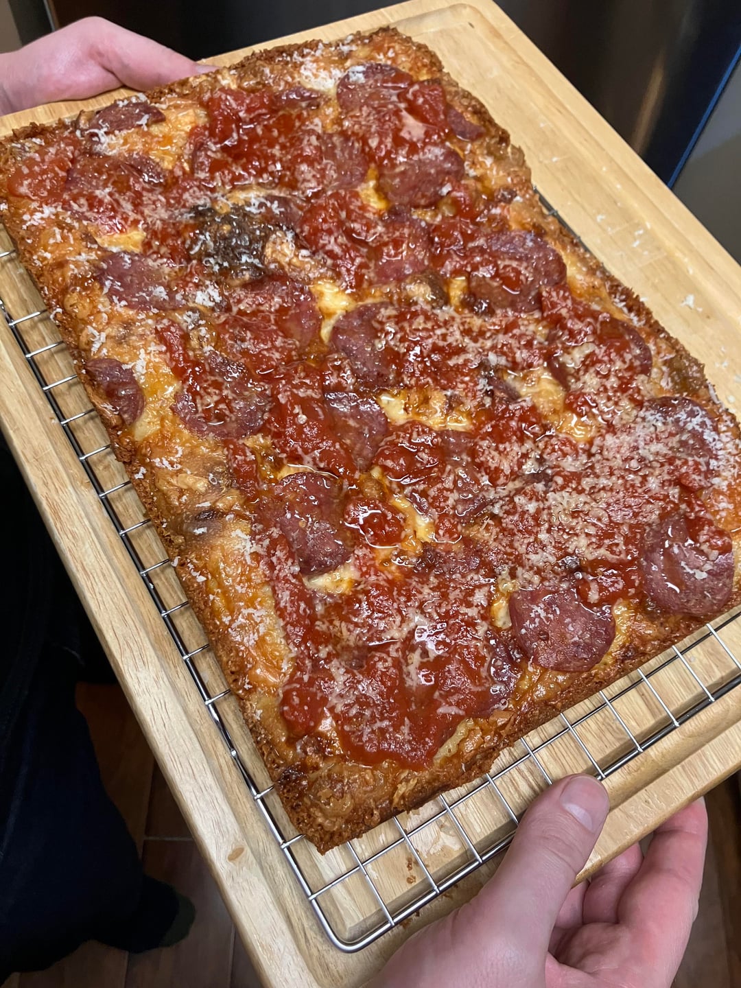 Long-time lurker here—wanting to share a couple of my Detroit-style pies. After several attempts, I think I’ve started to dial in the recipe. I had zero baking or pizza experience a few months ago, so I’m pretty proud of how these turned out.